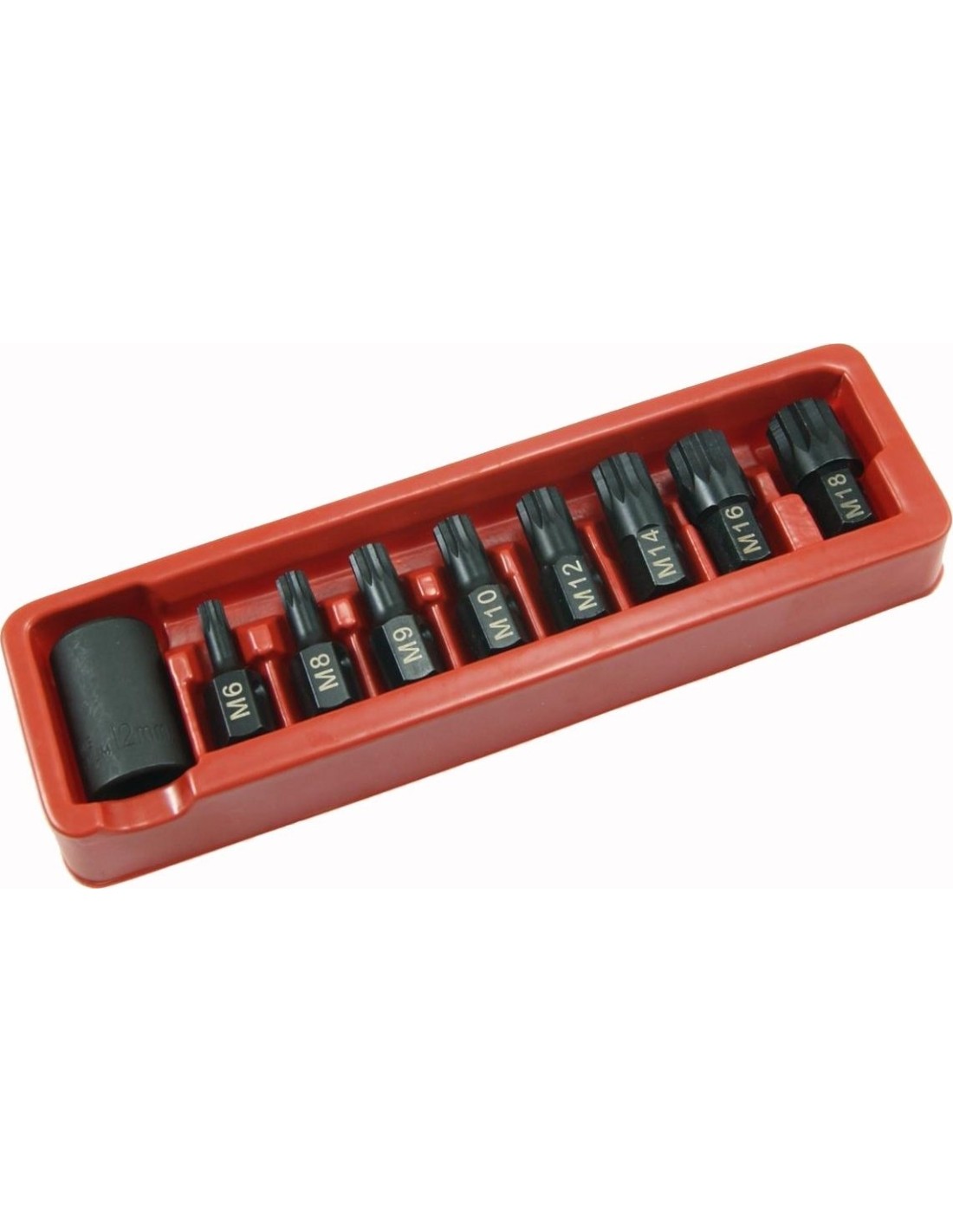 1/2" Galvučių smūginių su antgaliais rinkinys (SPLINE) 9vnt.