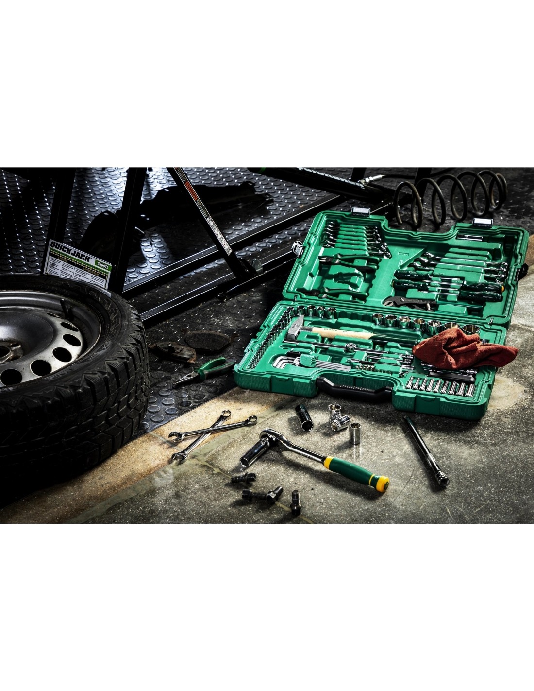 1/4" + 1/2" Galvučių ir įrankių rinkinys 104vnt.