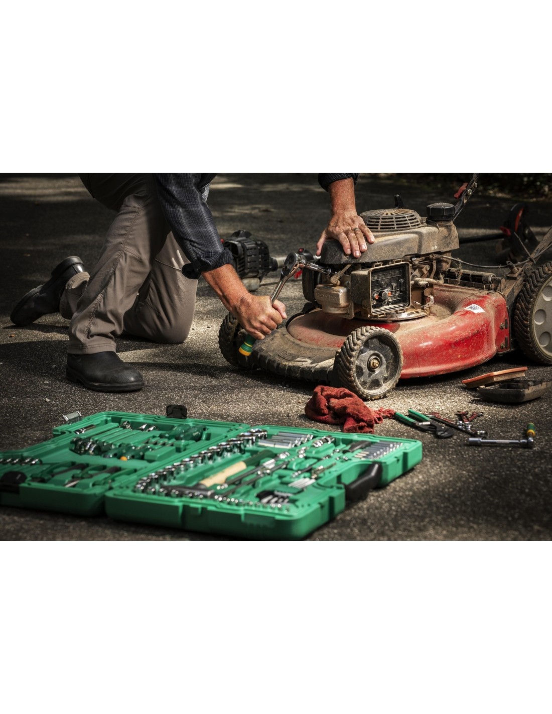 Universalus įrankių rinkinys, kuriame yra įrankiai, reikalingi daugumai remonto darbų