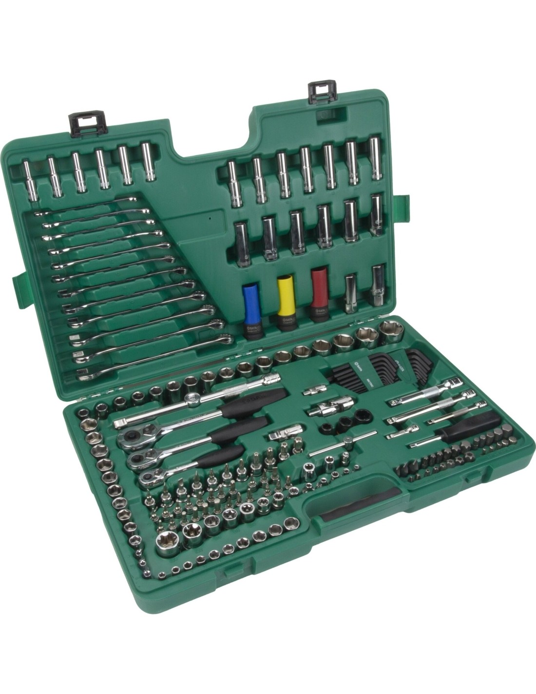 The SATA 190-piece Workshop Tool Set is ideal for those seeking efficiency, organization, and high performance. Designed to meet the demands of the most discerning professionals, the SATA tool set delivers robustness, versatility, and technology. With special sockets for extracting damaged screws and millimeter-sized tools for the most common applications on the market, this kit is made to handle everything from everyday workshop tasks to the most specific challenges. The sturdy and well-organized case optimizes transport and use in the workplace, ensuring practicality and durability.