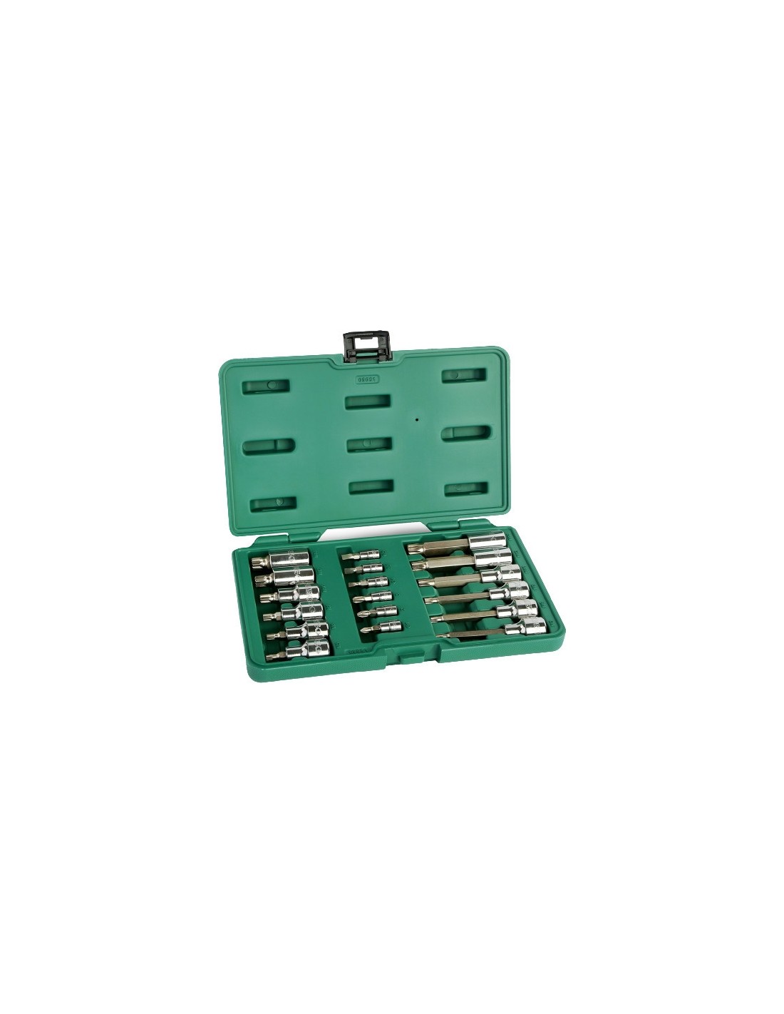Galvučių su antgaliais rinkinys 1/4 + 1/2 (SPLINE) 18vnt.