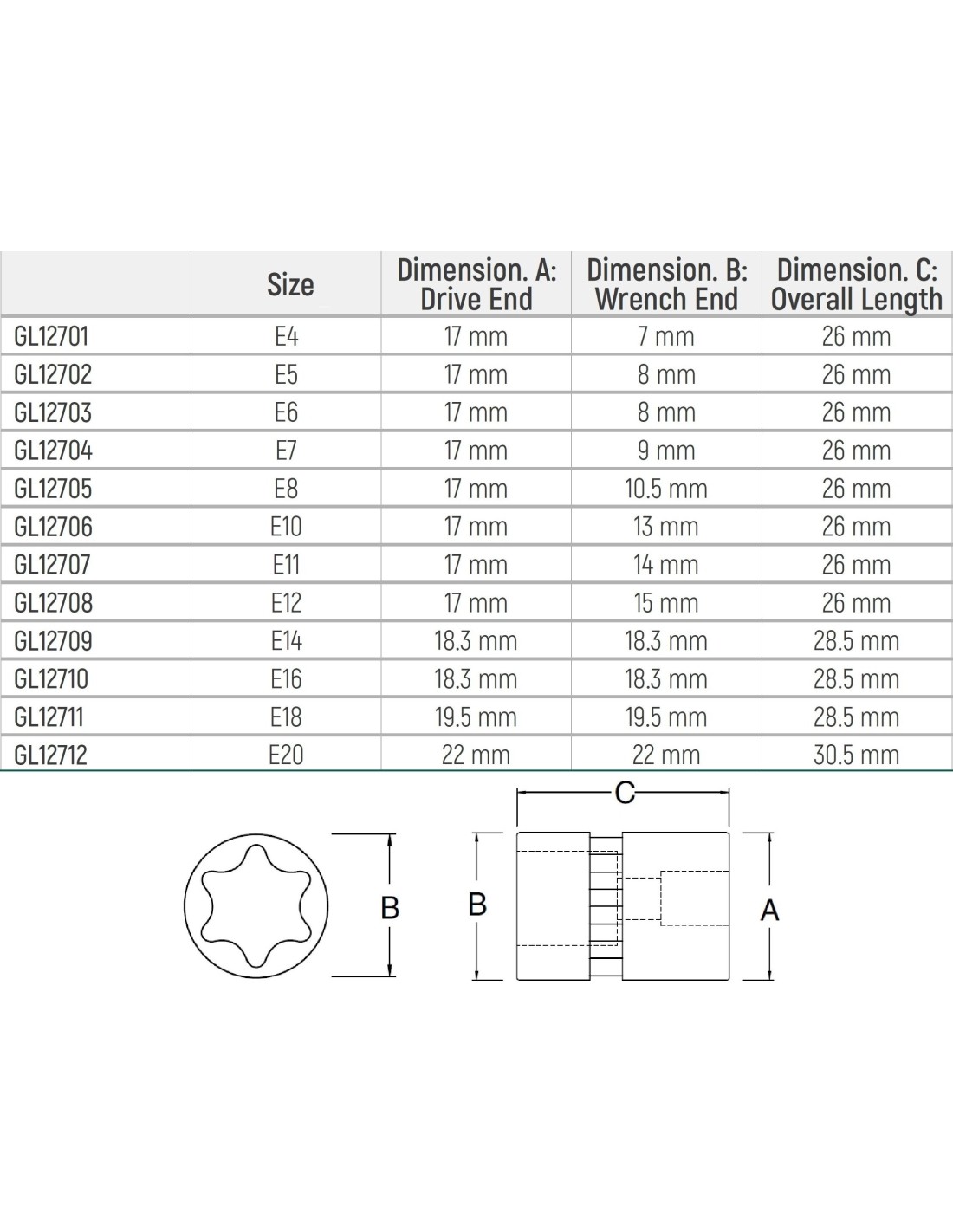 3/8" Dr. E-TORX socket - E14