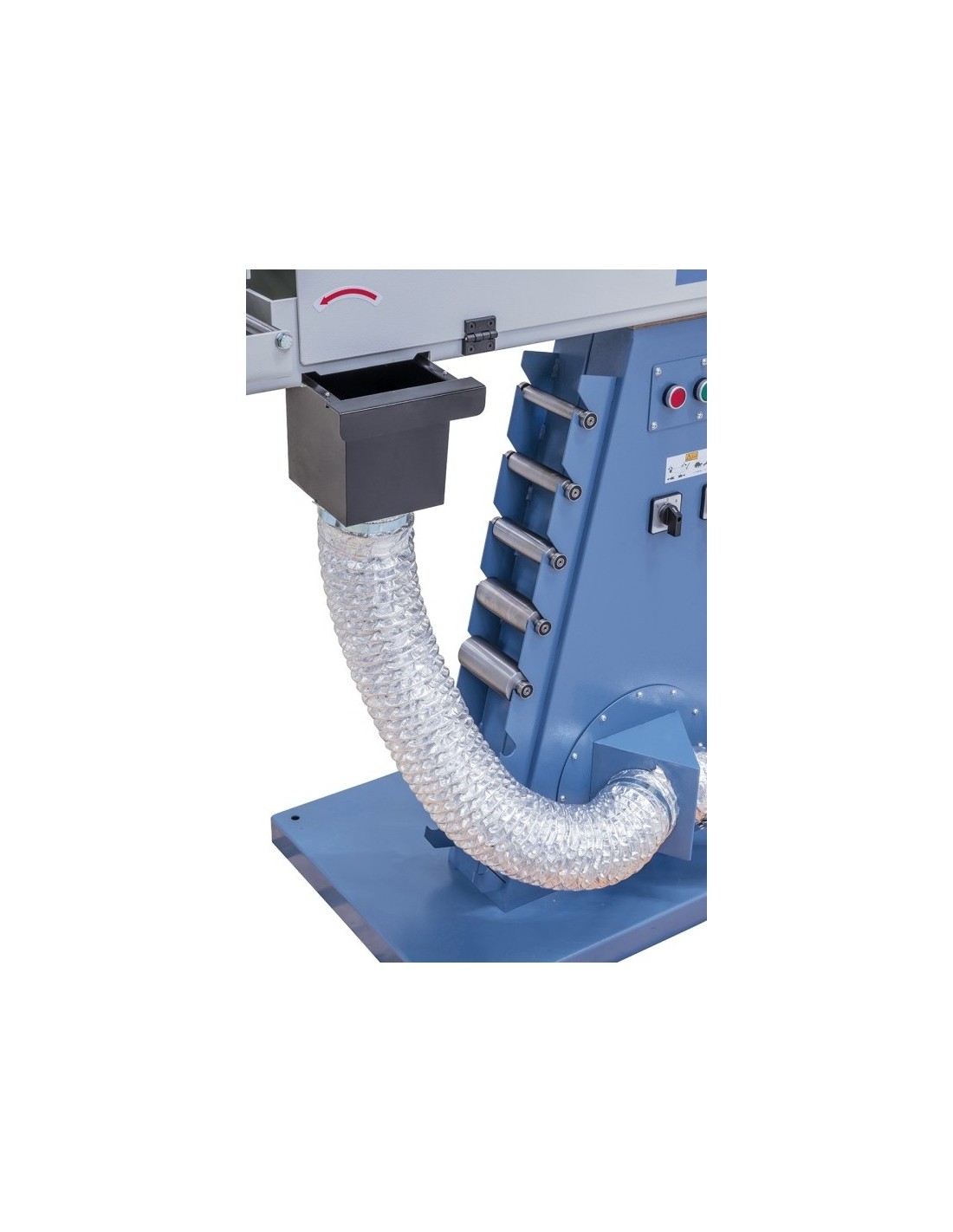 Vienas iš svarbiausių šio modelio privalumų yra integruota dulkių nutraukimo sistema. Ji užtikrina švaresnę darbo aplinką, sumažina abrazyvinių dalelių kiekį ore ir prisideda prie įrangos ilgaamžiškumo bei operatoriaus saugumo. Tai ypač aktualu dirbant su nerūdijančiu plienu ar atliekant didesnio intensyvumo šlifavimo darbus.