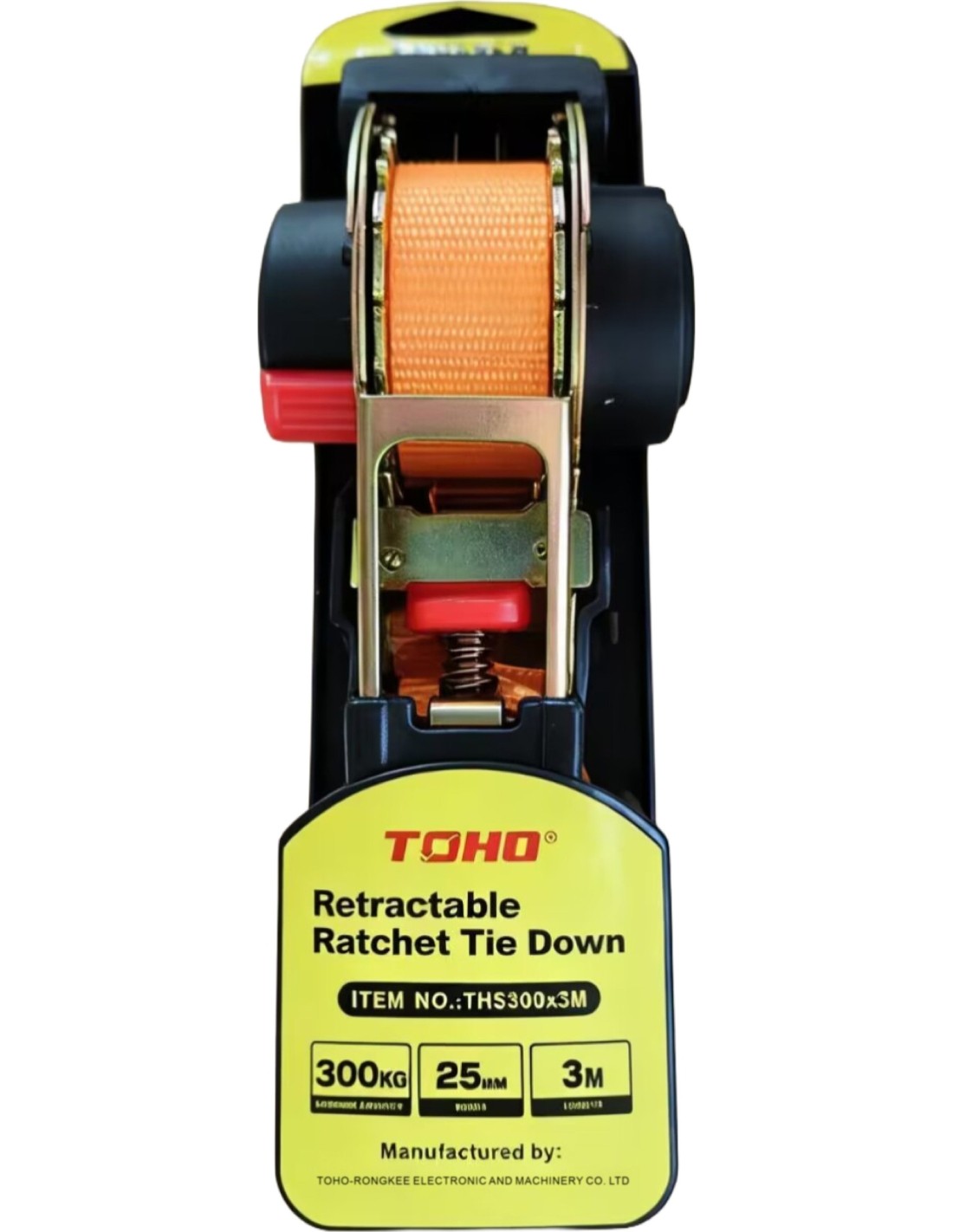 Auto retract ratchet tie down strap 0.3t, L3.0m, width 25mm