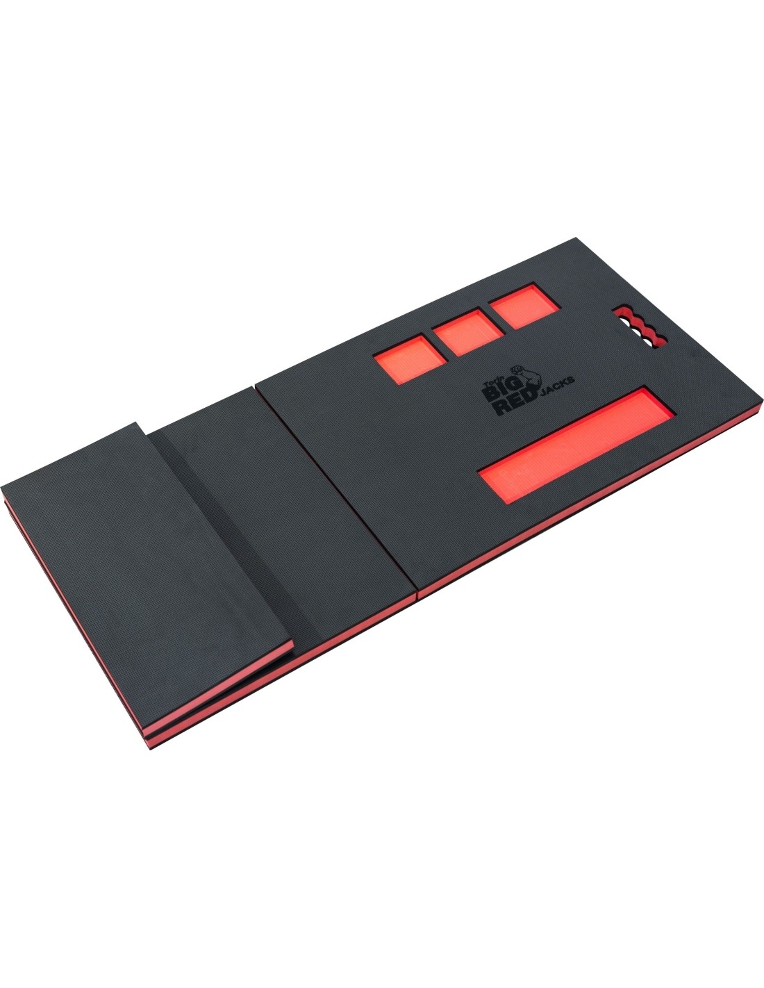 Can be used folded for sitting, kneeling, or unfolded for under-car vehicle work.