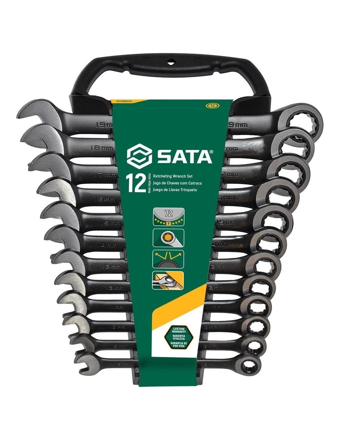 Kombinuotų raktų su terkšle rinkinys 12vnt. (8-19)