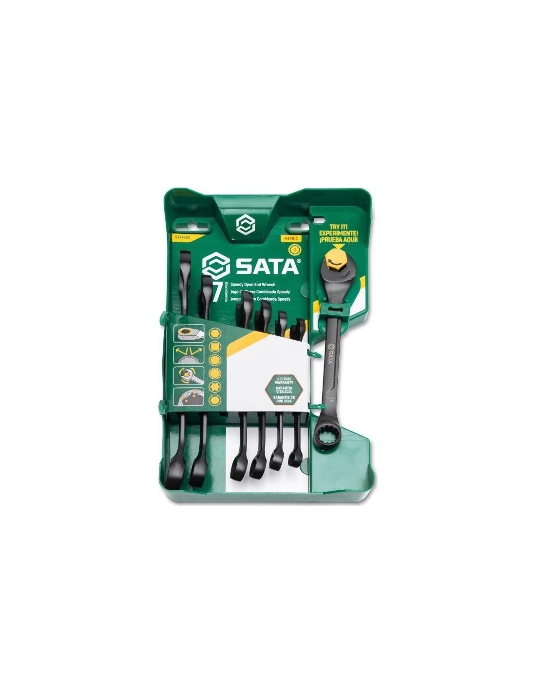 Metric X6 open end ratcheting combination wrench set 7pcs (8-17mm) black