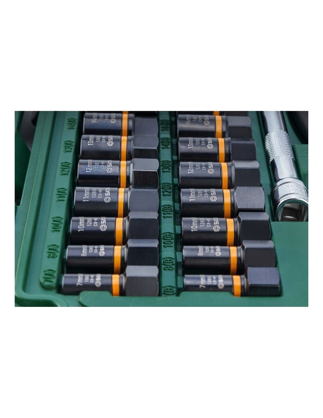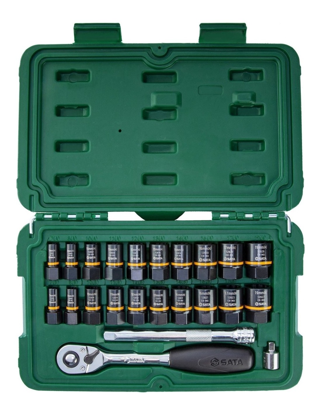 16 pcs 3/8” Extraction sockets 10, 10, 11, 11, 12, 12, 13, 13, 14, 14, 16, 16, 17, 17, 19, 19 mm