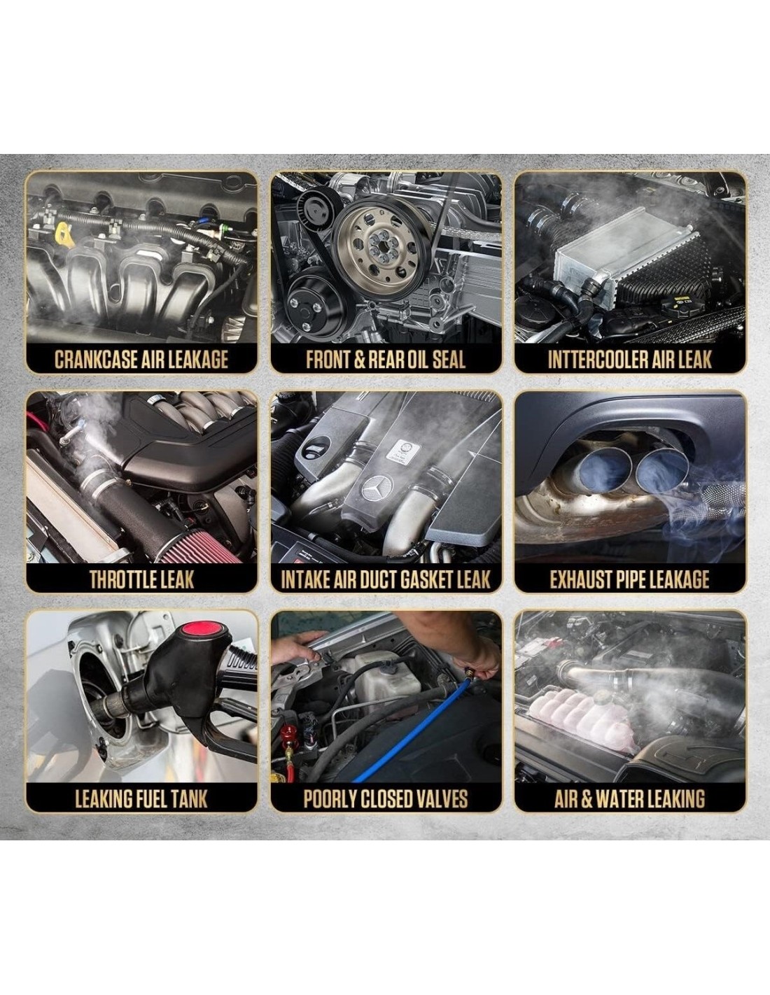 This automotive maintenance kit includes 3 adapters to fit most intake hoses and connect the 1.5 meter smoke hose tightly to the auto part you want to test for leakage, whether on your car, motorcycle, ATV, speedboat, light truck, or other vehicle
