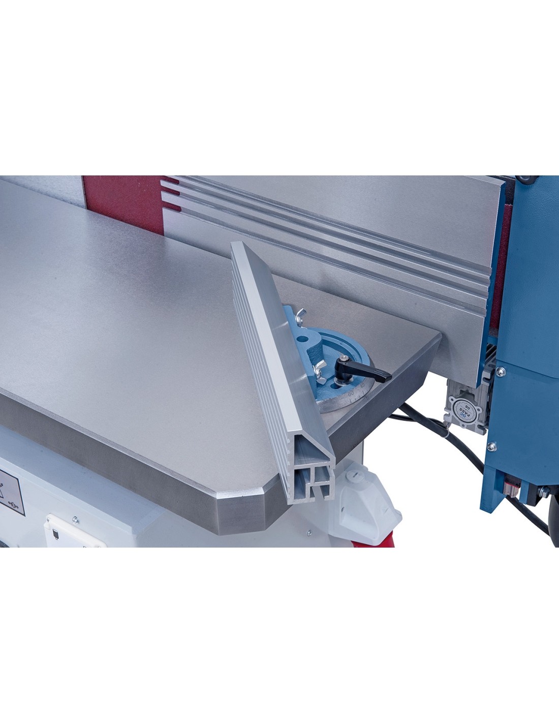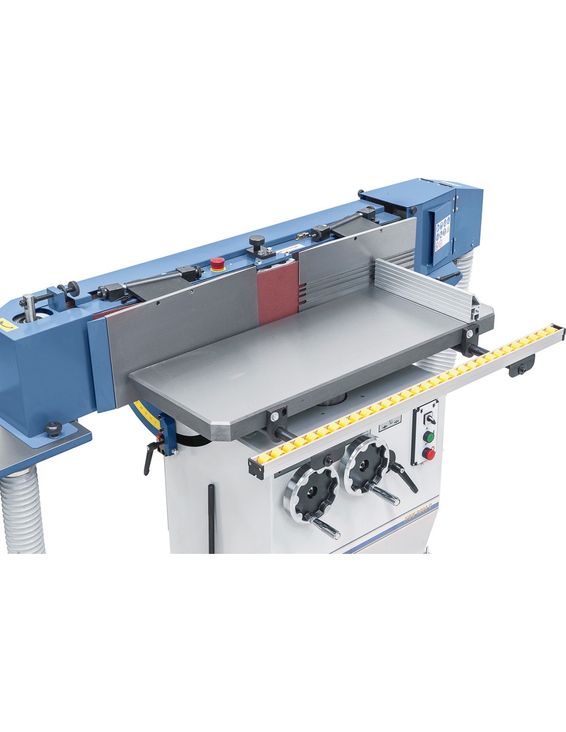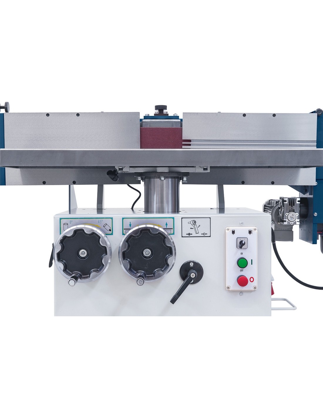 • Handwheels allow for height adjustment of work table and tilting of sanding unit