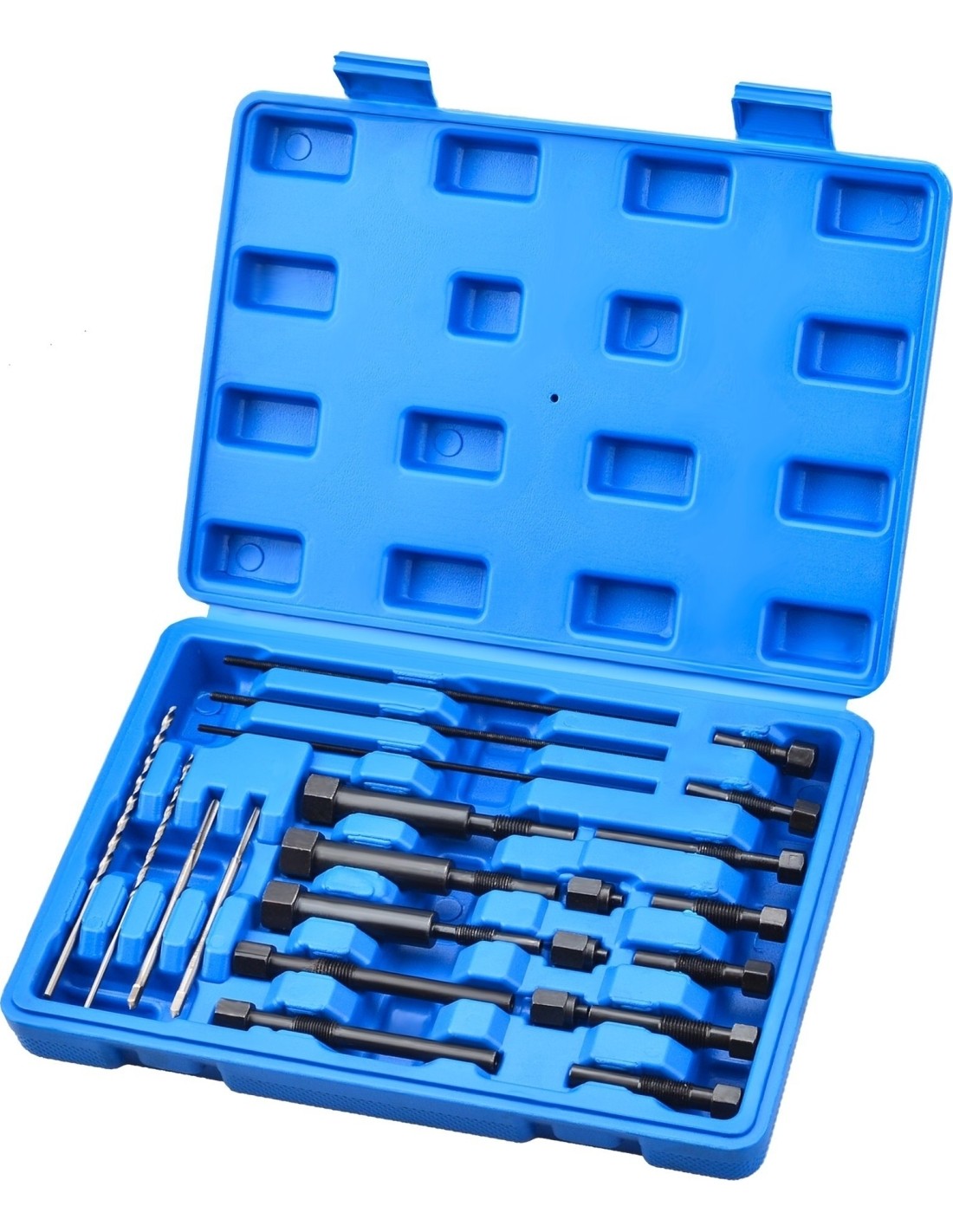 Rinkinyje yra visi reikalingi adapteriai, centravimo ir valymo įrankiai saugiam kaitinimo žvakių pašalinimui nepažeidžiant variklio