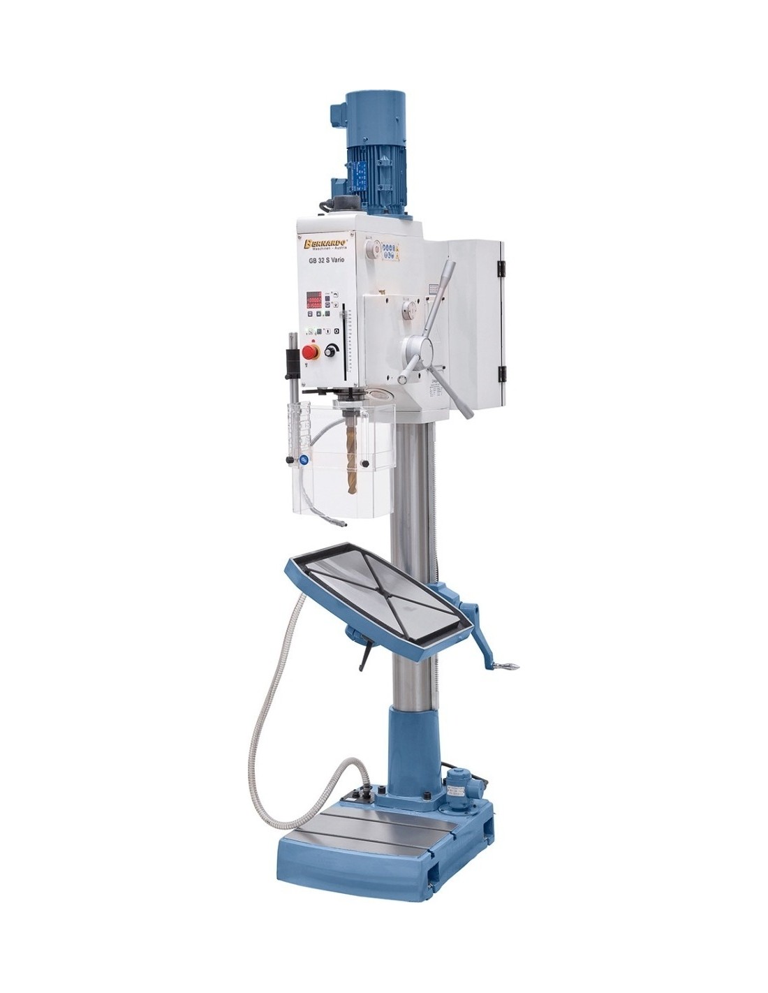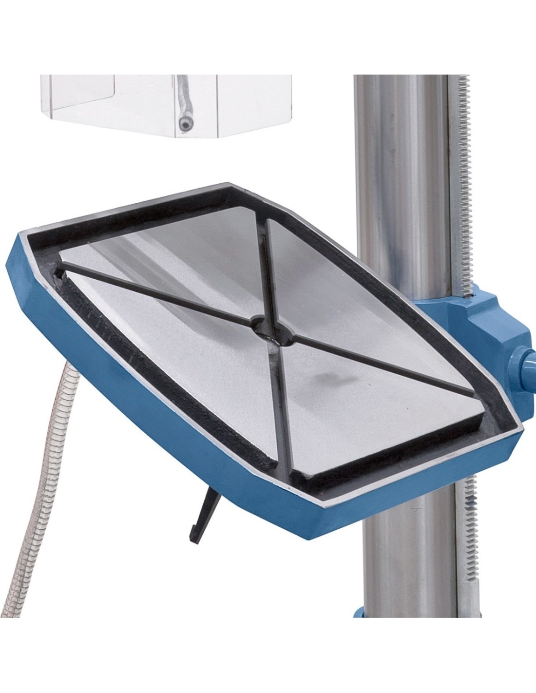 - Solid, grey cast iron table features a tilt- and turnable supportÂ