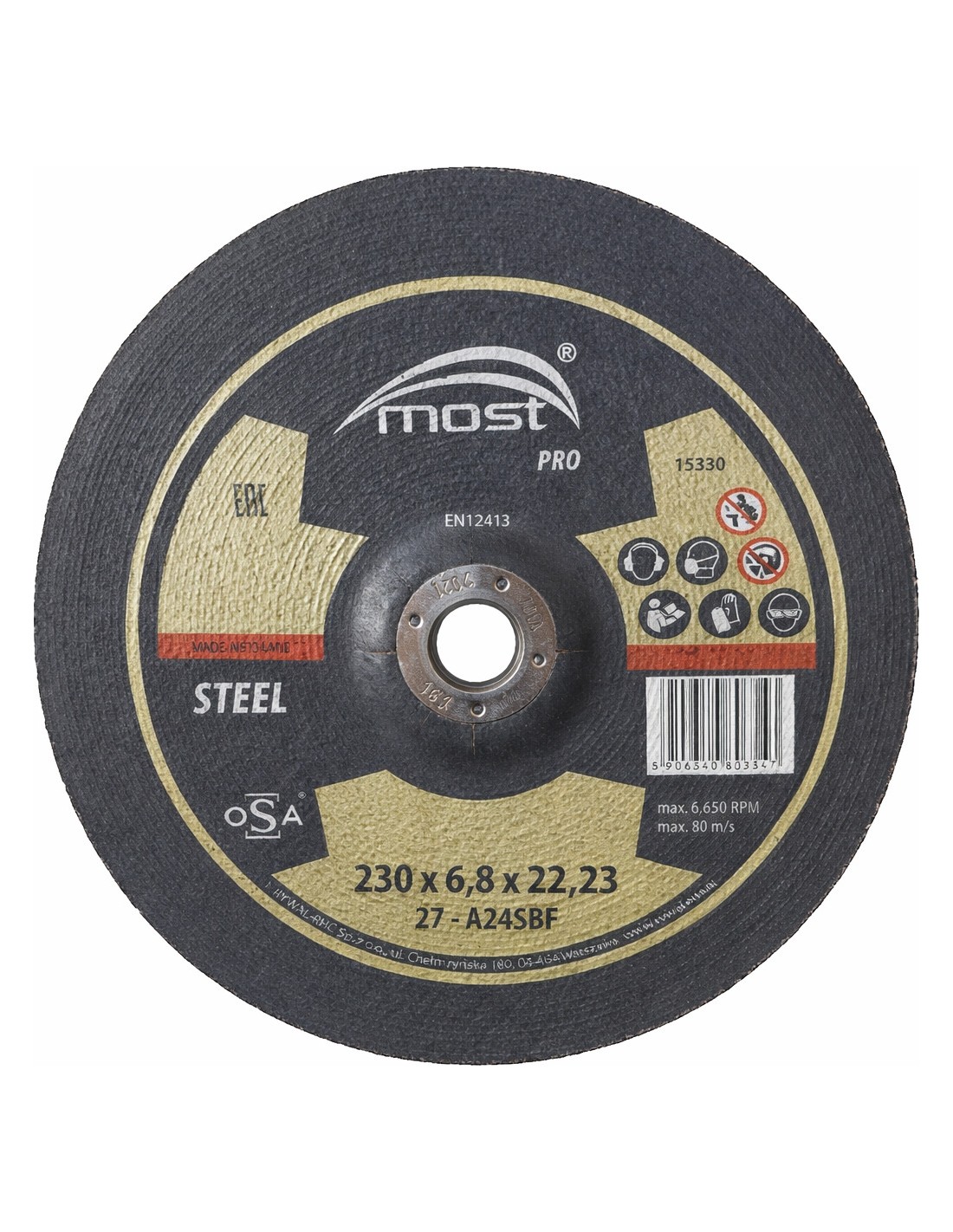 Šlifavimo diskas 230x6,8x22,23mm MOST PRO steel, juodam metalui