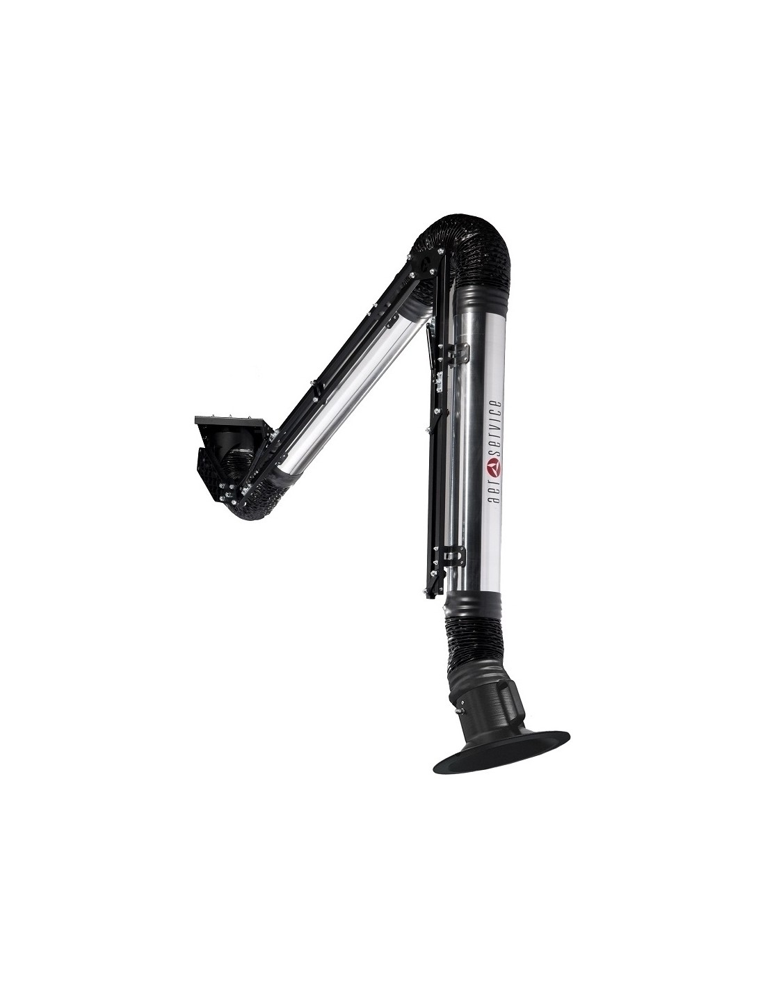 Articulated 3 metres arm Ø160 mm (with rigid or flexible hose), including hood with damper and multi-directional articulation.