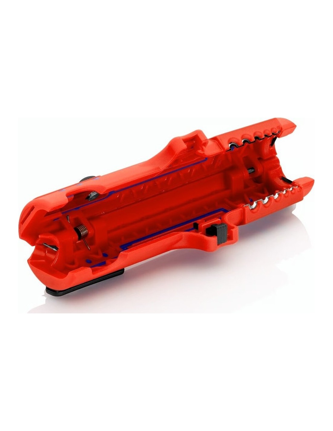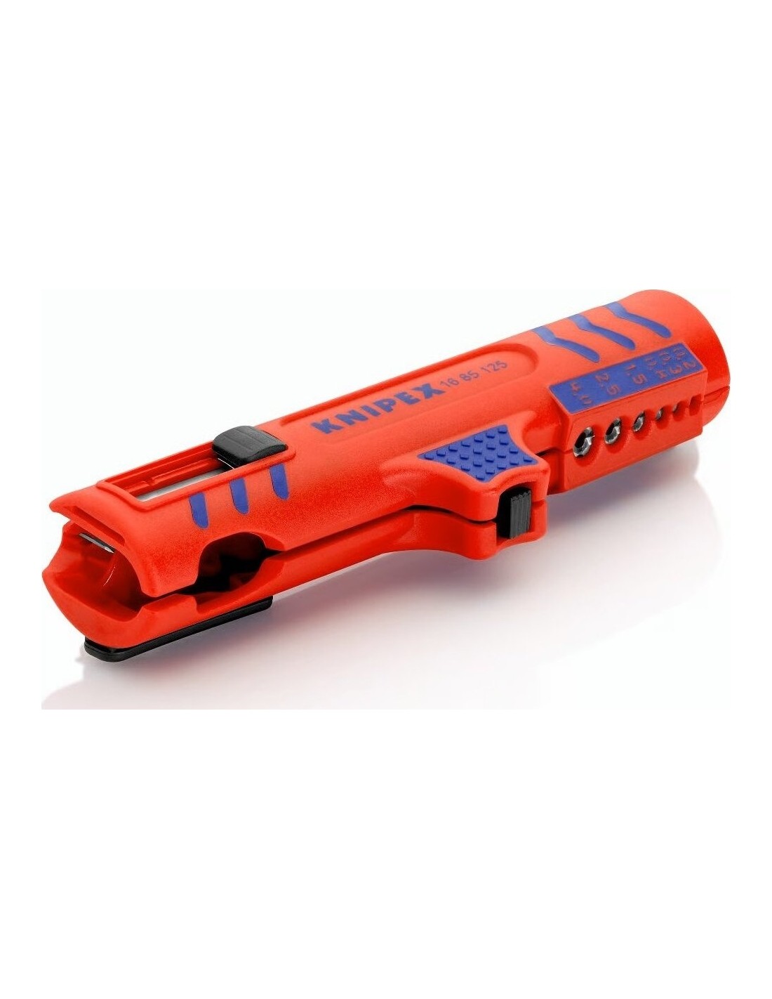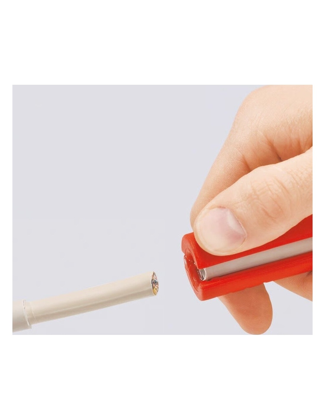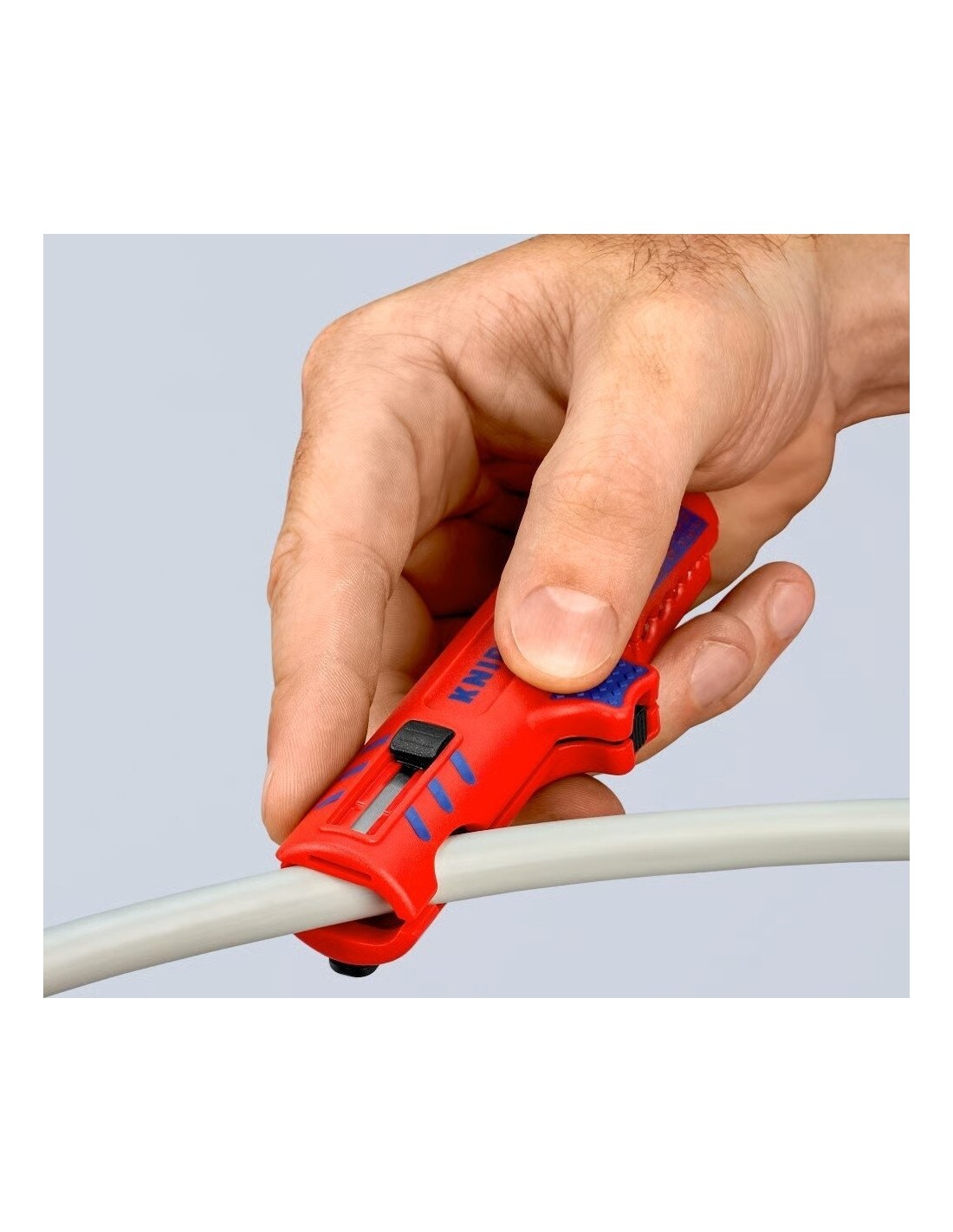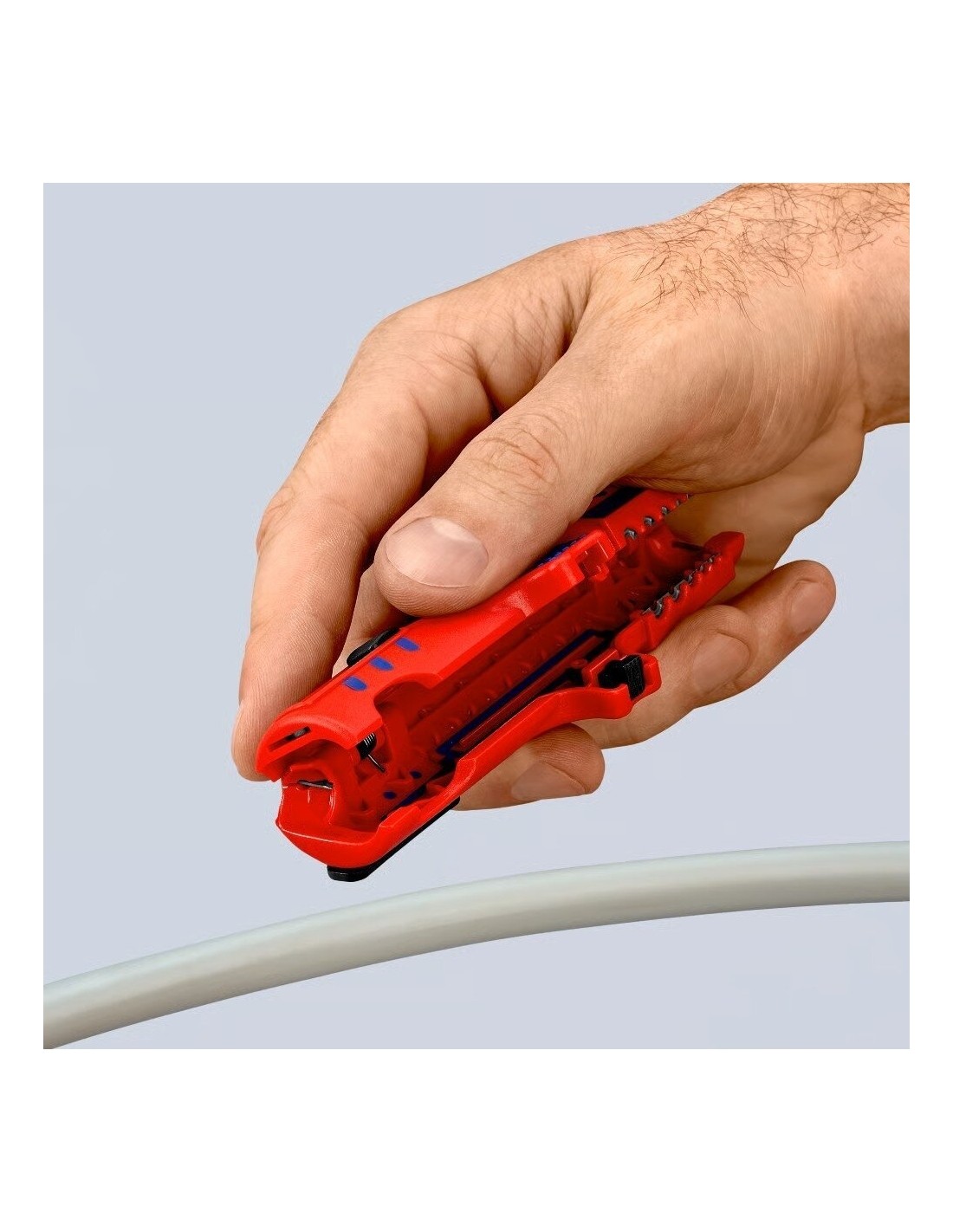 Su integruotu kabelio kreipikliu išilginiam pjovimui. Tai leidžia lengviau nuimti standžią izoliaciją (pvz., be halogenų).