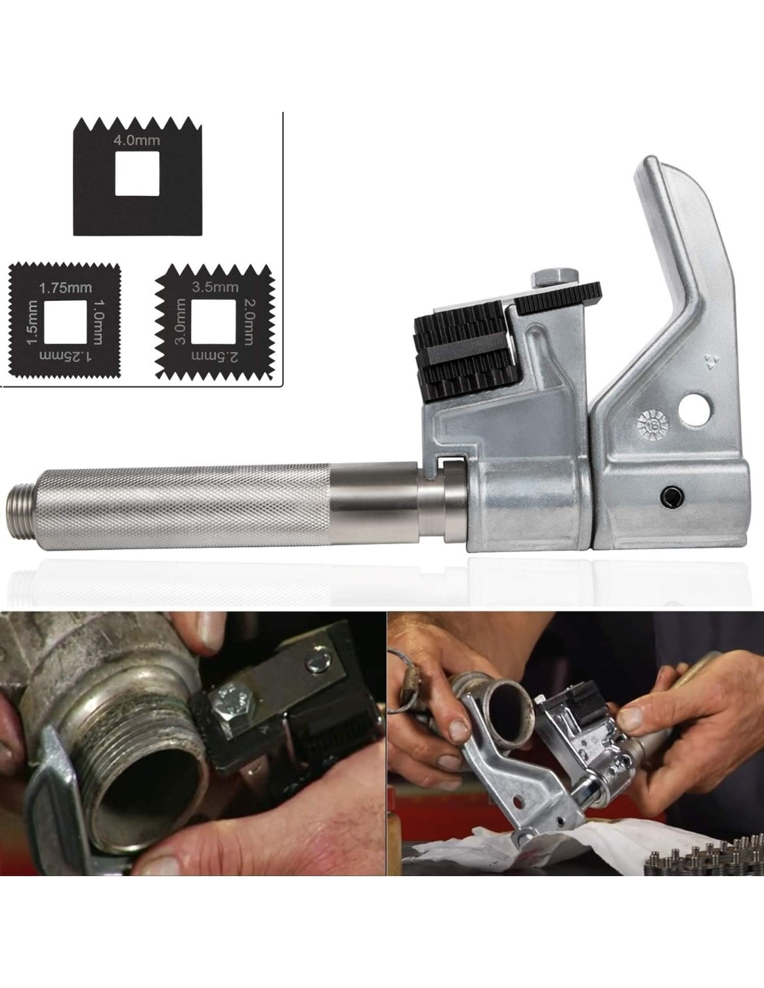 The die cast alloy V-pad will not damage the threads and V-pads and dies are replaceable.