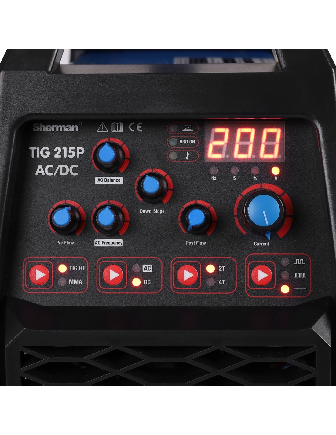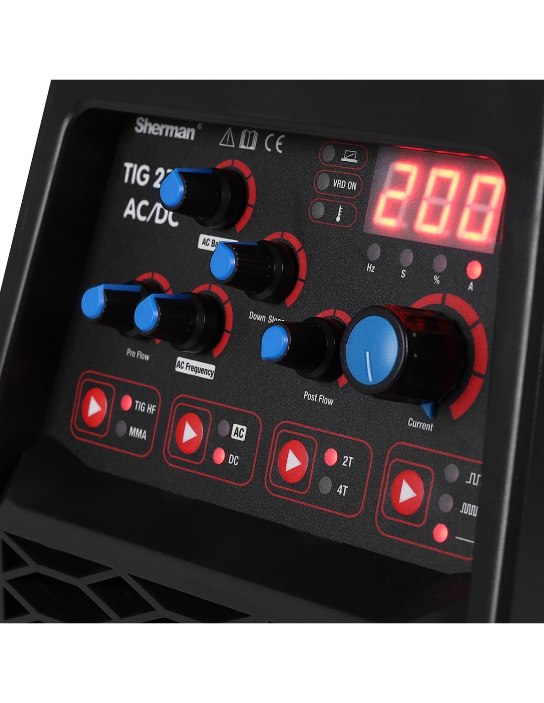 - Fan Stop, Electrode Cleaning Function, Current Slope, TIG Gas Preflow, Gas Preflow, TIG Pulse, Analog Control, LED Display