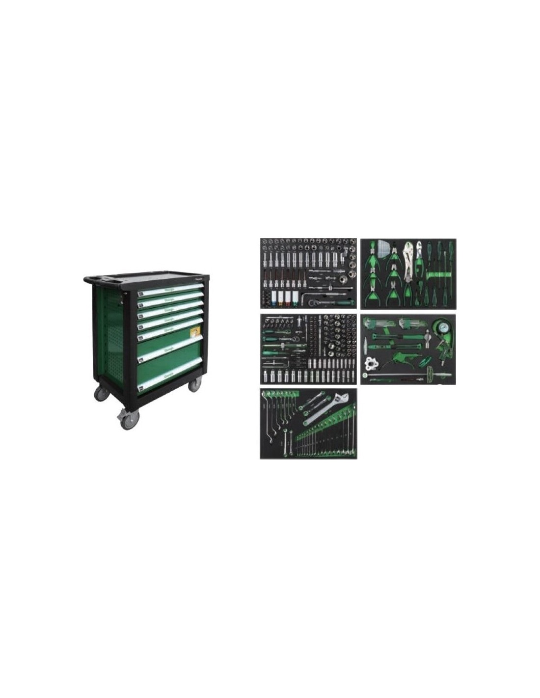 Roller cabinet 7 drawers, CL713017 with tool set trays (330pcs), 5 sets