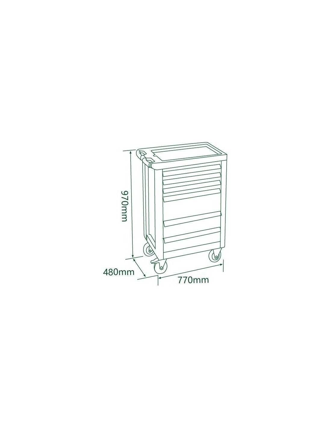 Overall dimensions with casters 770 x 480 x 970 mm