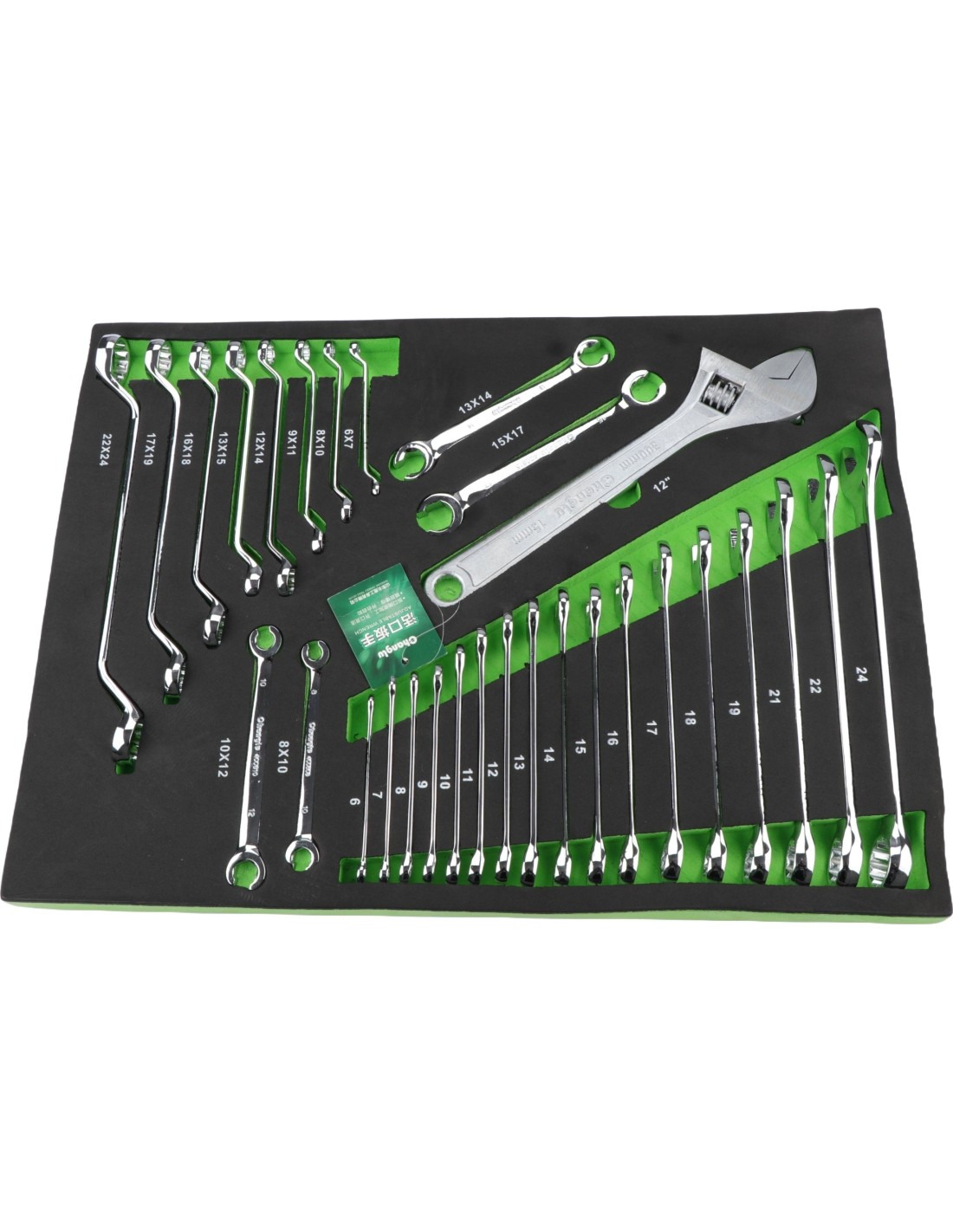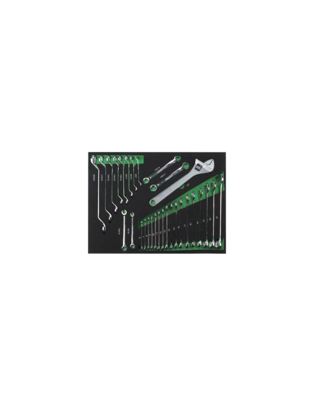 Tray. Double ended double deep offset ring spanner, flare nut wrench and adjustable wrench set 30 pcs