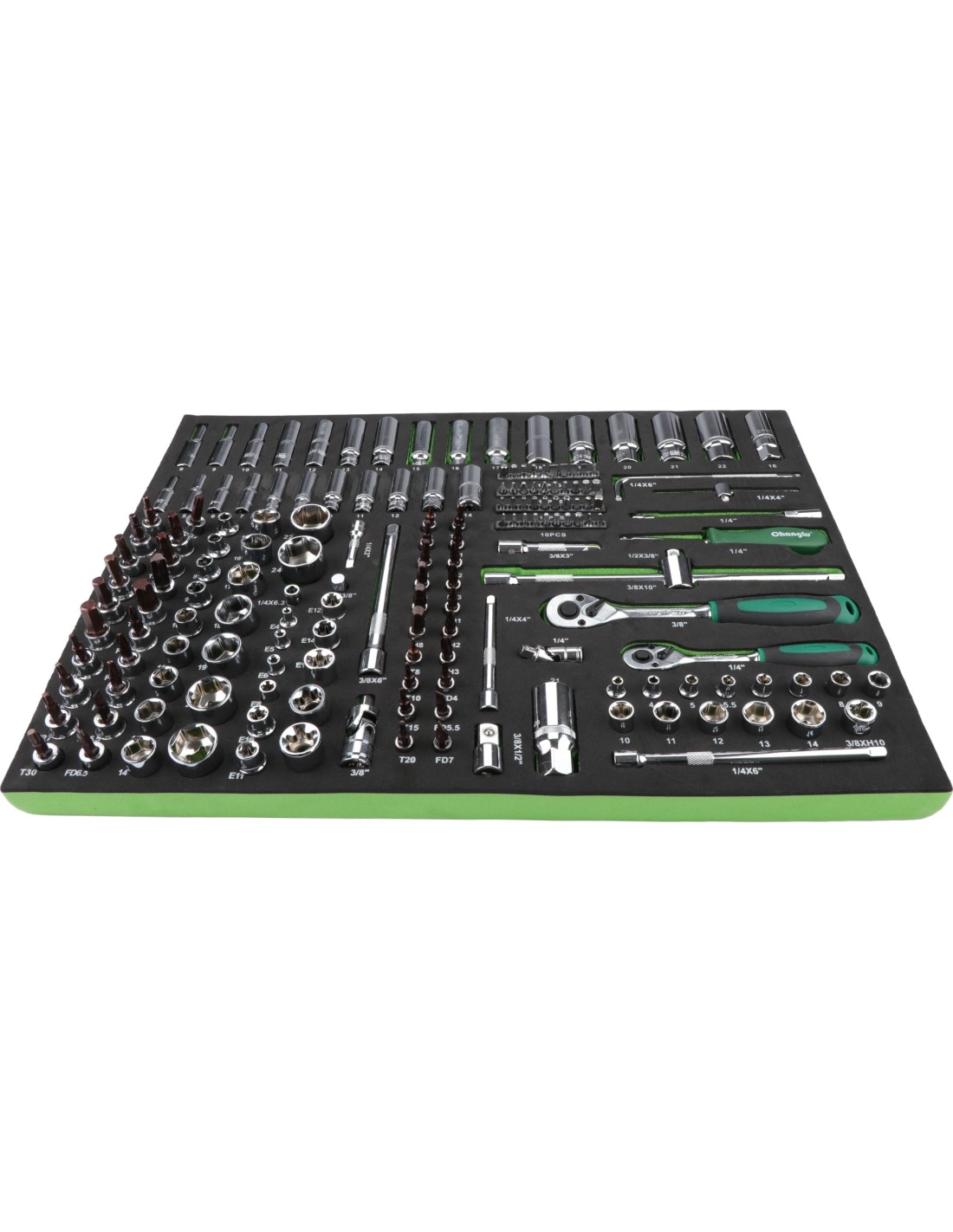 Tray. 1/4" + 3/8" Dr. Socket set 169 pcs