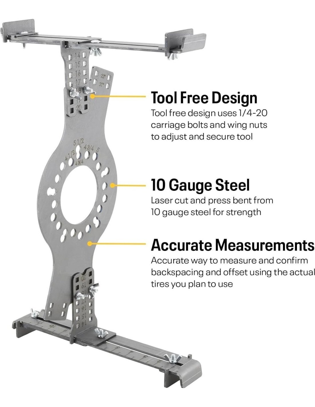 Ratlankių montavimo įrankis pagamintas iš 10 dydžio plieno ir lazeriu išgraviruotas su atitinkamais matavimo taškais. Ratų matavimo įrankis yra daug tvirtesnis nei rinkoje esantys plastikiniai modeliai (kurie nenaudoja tikros padangos) ir yra daug pigesnis nei modeliai, pagaminti iš lieto aliuminio