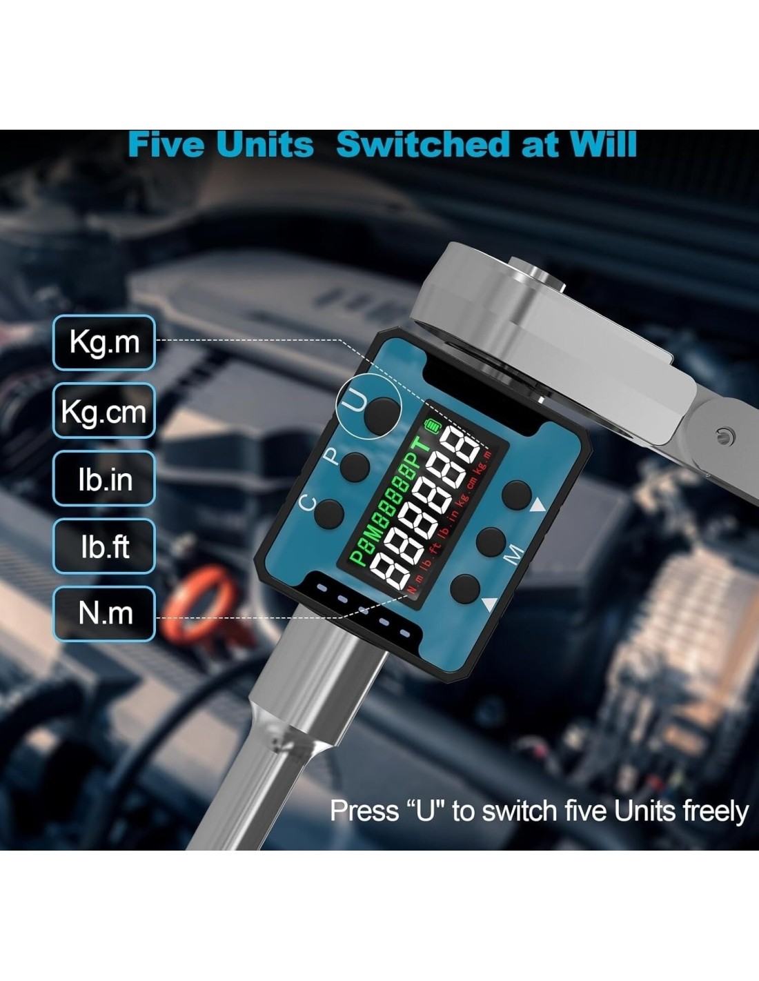This digital torque adapter provides forward/reverse bidirectional use functions, which improves work efficiency. The accuracy of this torque adapter is as high as ±2%. It has five torque units: Kg.cm/N.m/Ib.ft/Ib.in/Kg.m, which can be switched freely. The maximum storage data of the adapter is 400 groups, which are displayed as M000-M399. When you need multiple groups of data, the torque wrench adapter can provide you with quick operation.