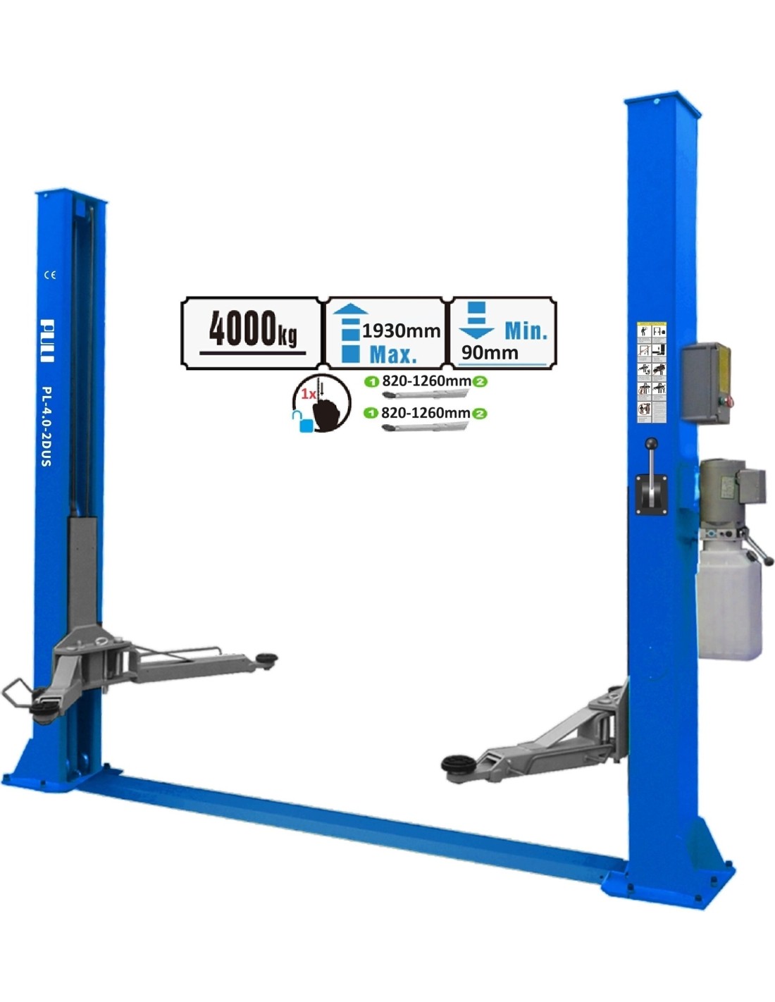 Hidraulinis 2 kolonų keltuvas su mech. saugumo fiksatoriais (vienpus fiksavimas), 4.0t - 4.0t, 380V