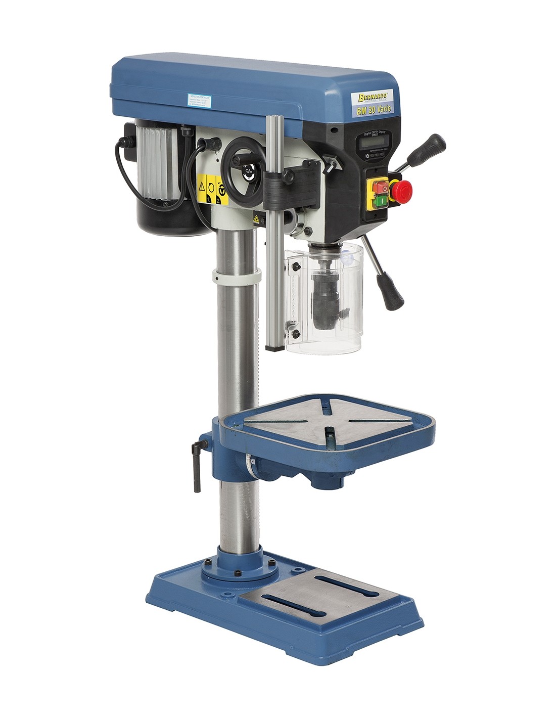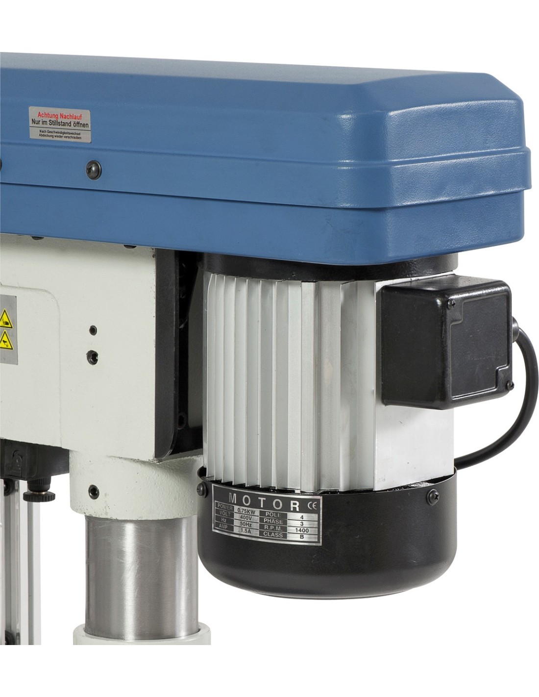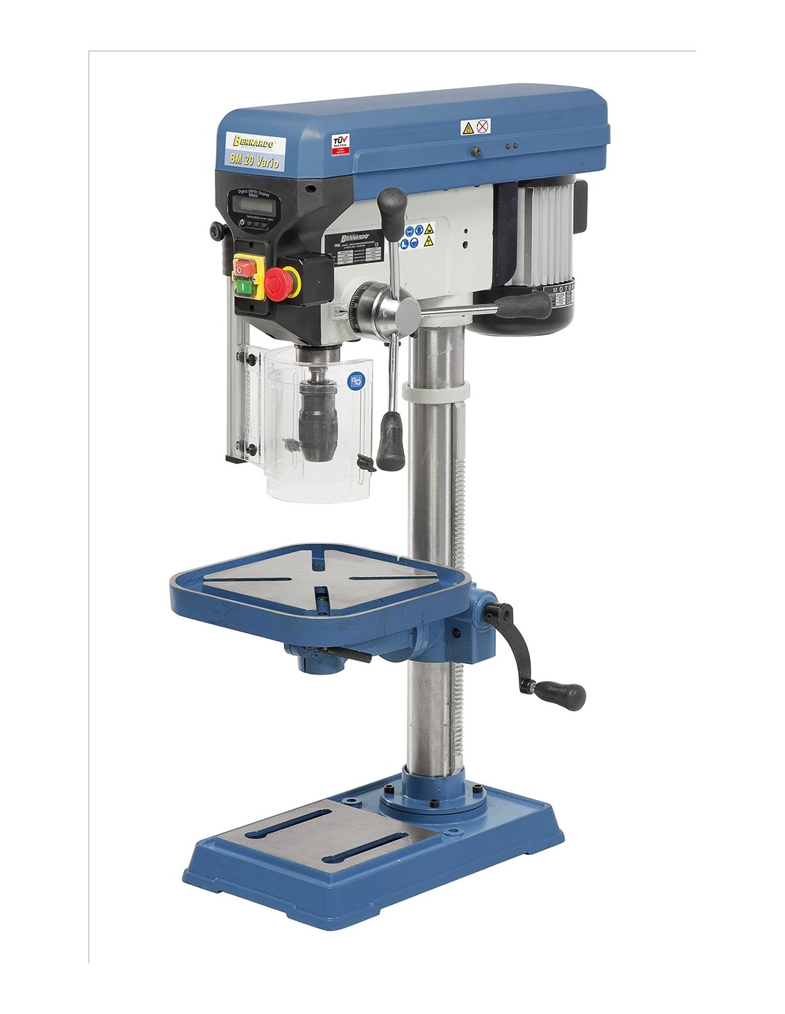 - Drill table tilts (±45°) – gear rack allows height adjustment