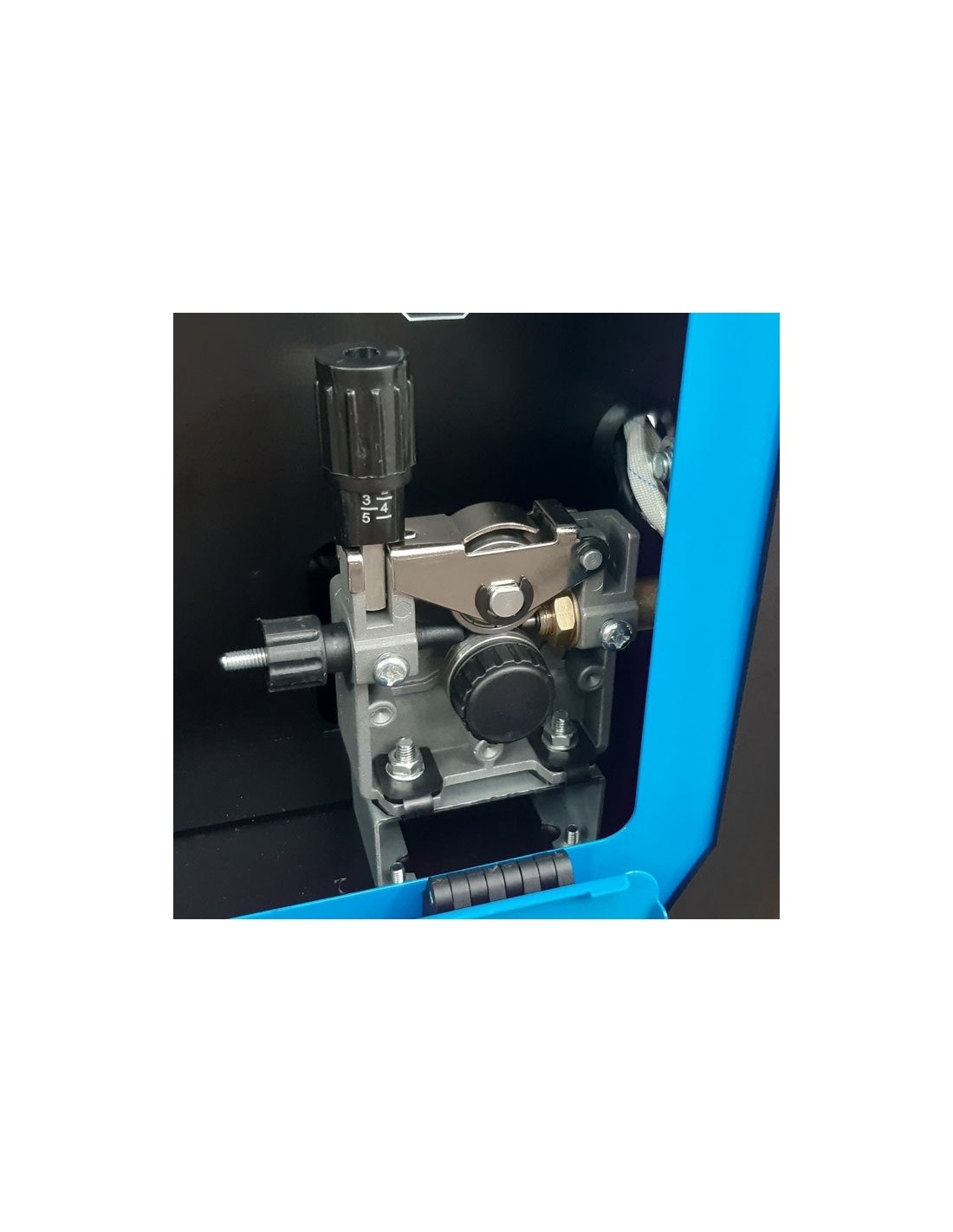 Suvirinimo aparate įrengtas unikalus MIG griebtuvas su rankenoje esančia rankenėle, skirta nuotoliniu būdu reguliuoti suvirinimo įtampą / srovę dirbant sinergijos režimu.