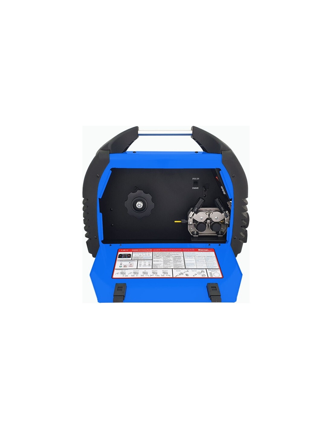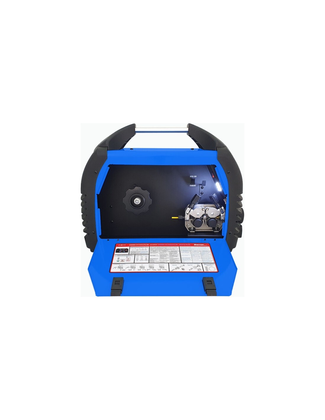 Suvirinimo aparatas gamykloje sukonfigūruotas aliuminio suvirinimui ir apima plieninį įdėklą bei ritinėlį plieno suvirinimui. Komplekte taip pat yra MIG suvirinimo pistoletas, elektrodų kabelis, įžeminimo kabelis ir apsauginių dujų prijungimo žarna.