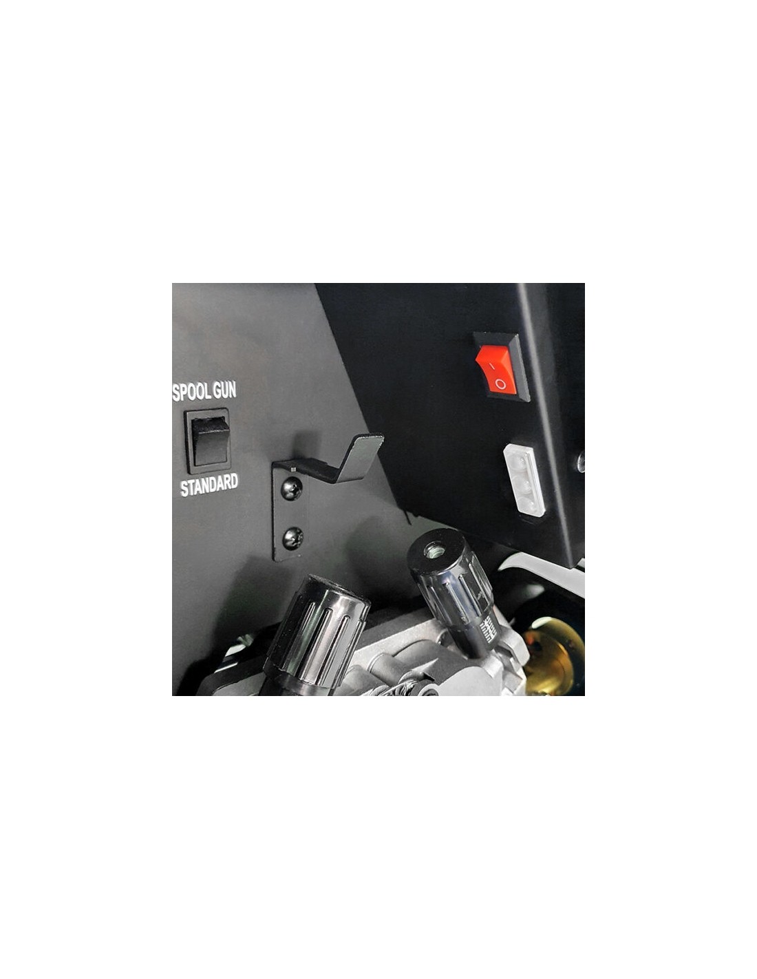 Prie įrenginio galima prijungti vielos ritę „Spool Gun“ (SG) su įmontuotu mini vielos tiektuvu ir D100 plieninės arba spalvotos vielos ritę.