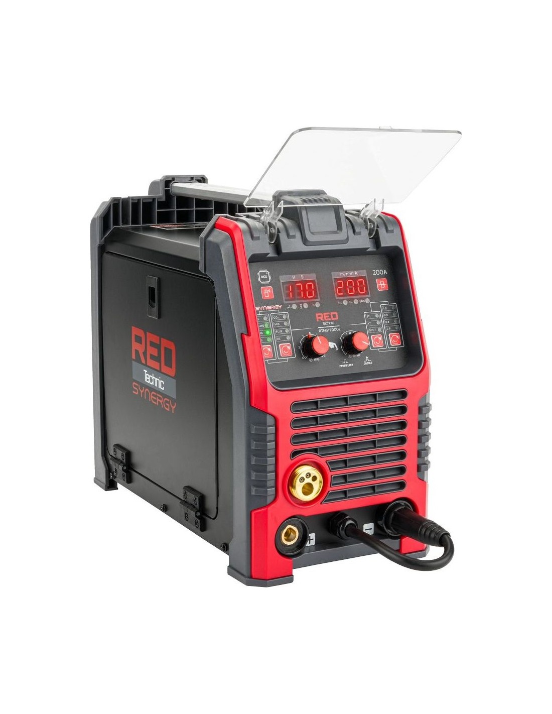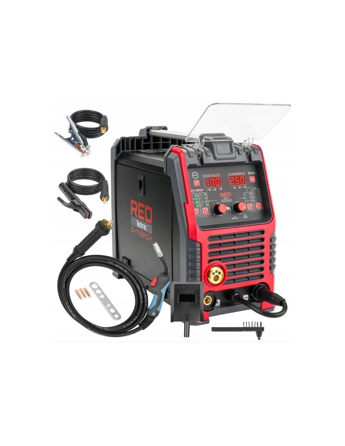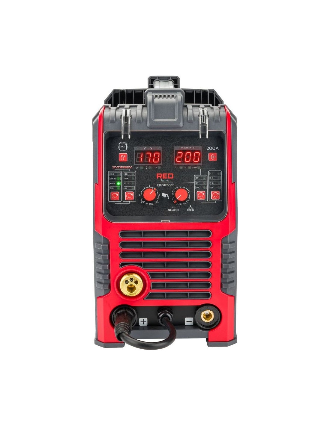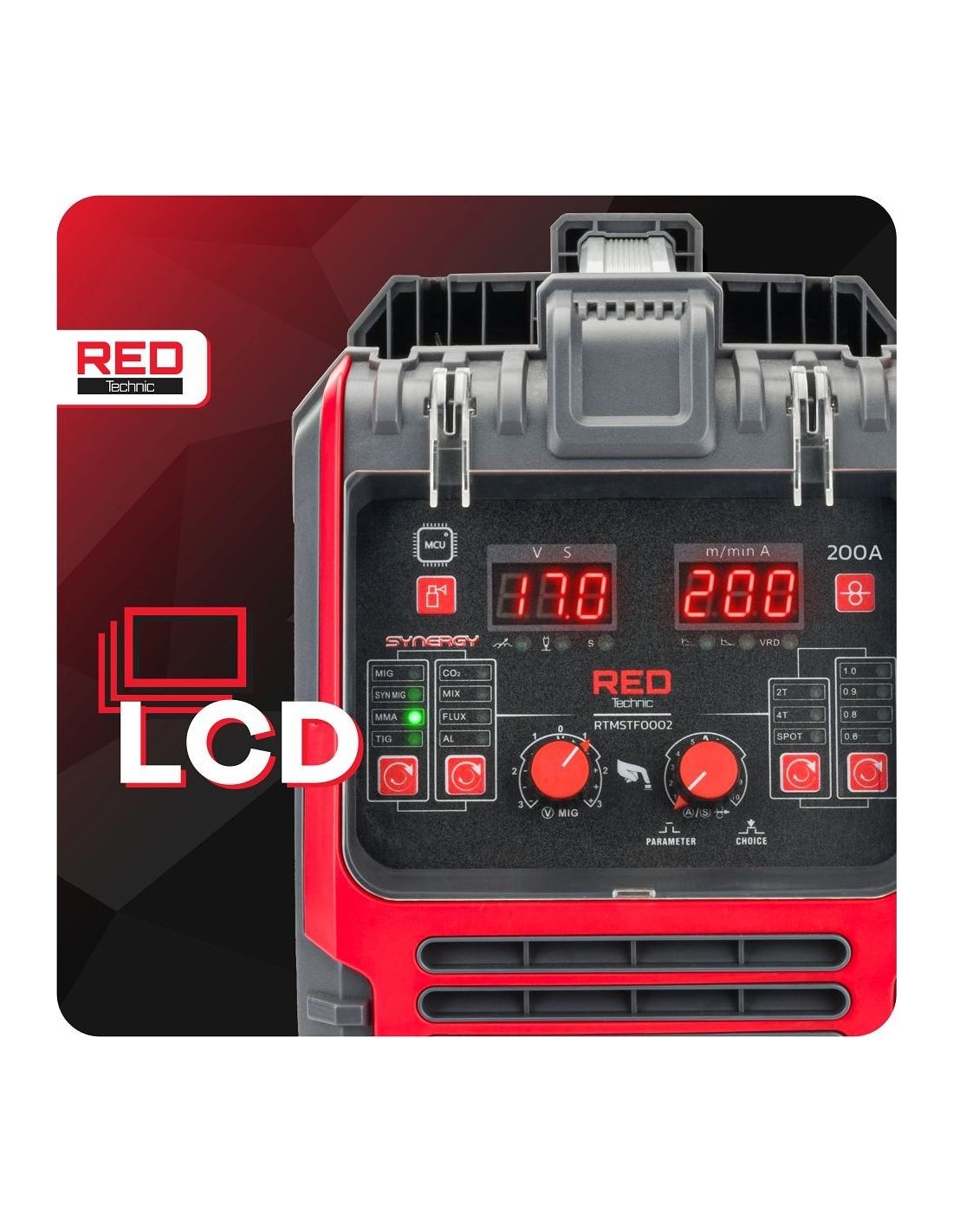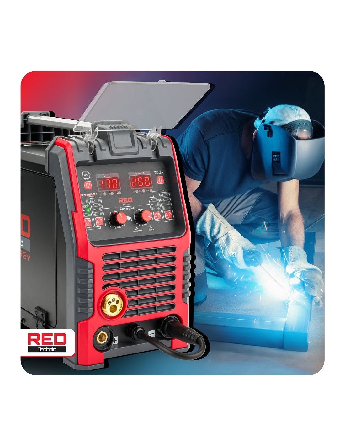 Red Technic suvirinimo pusautomatis – tai modernus inverterinis migomatas su sinergetiniu valdymu, skirtas universaliam naudojimui tiek garaže, tiek dirbtuvėse. Vienas aparatas leidžia dirbti keliomis technologijomis: MIG/MAG, MMA, TIG Lift bei FLUX (be dujų), todėl puikiai prisitaiko prie skirtingų suvirinimo užduočių.