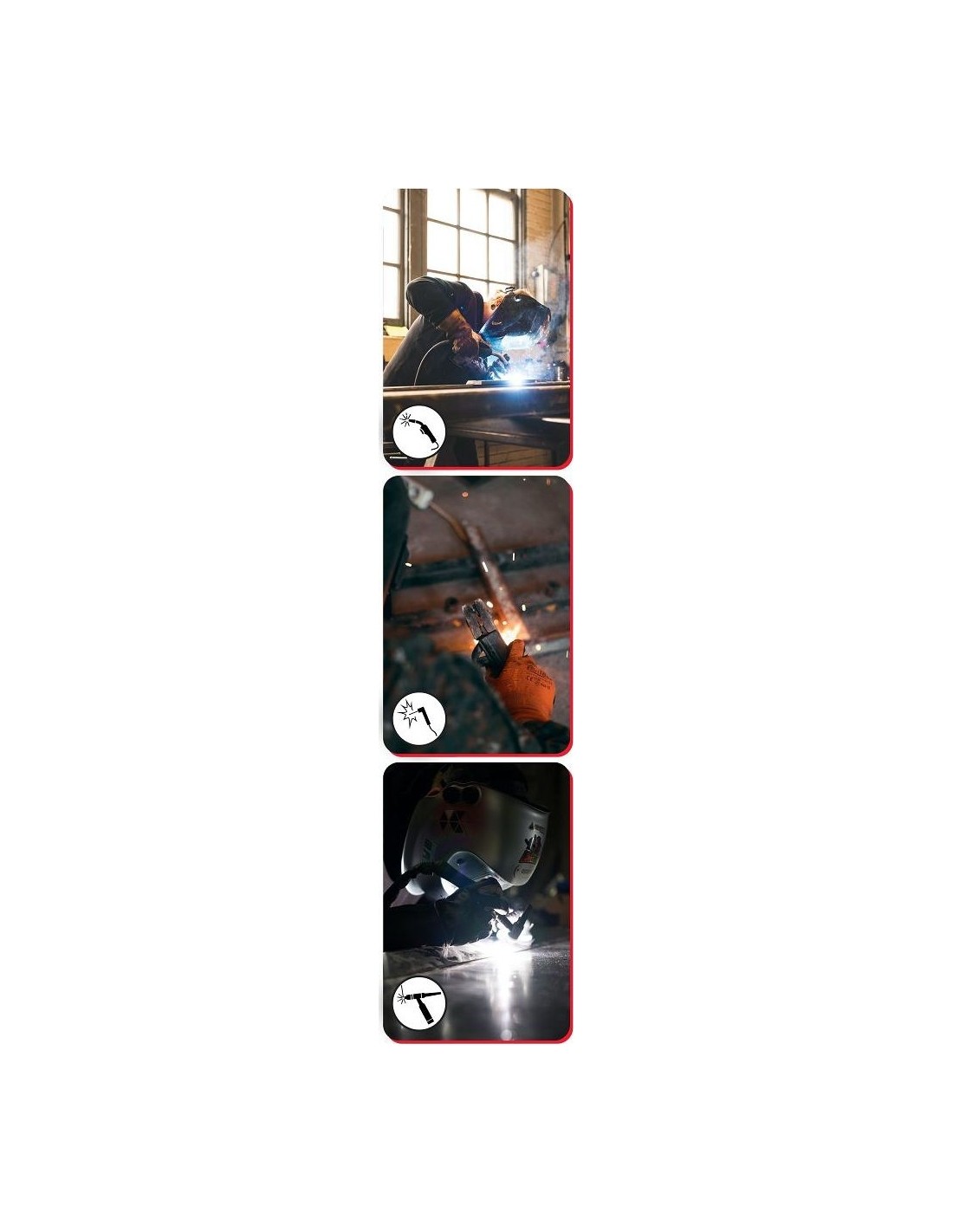 - Galingumas iki 250 A – tinkamas įvairaus storio metalui