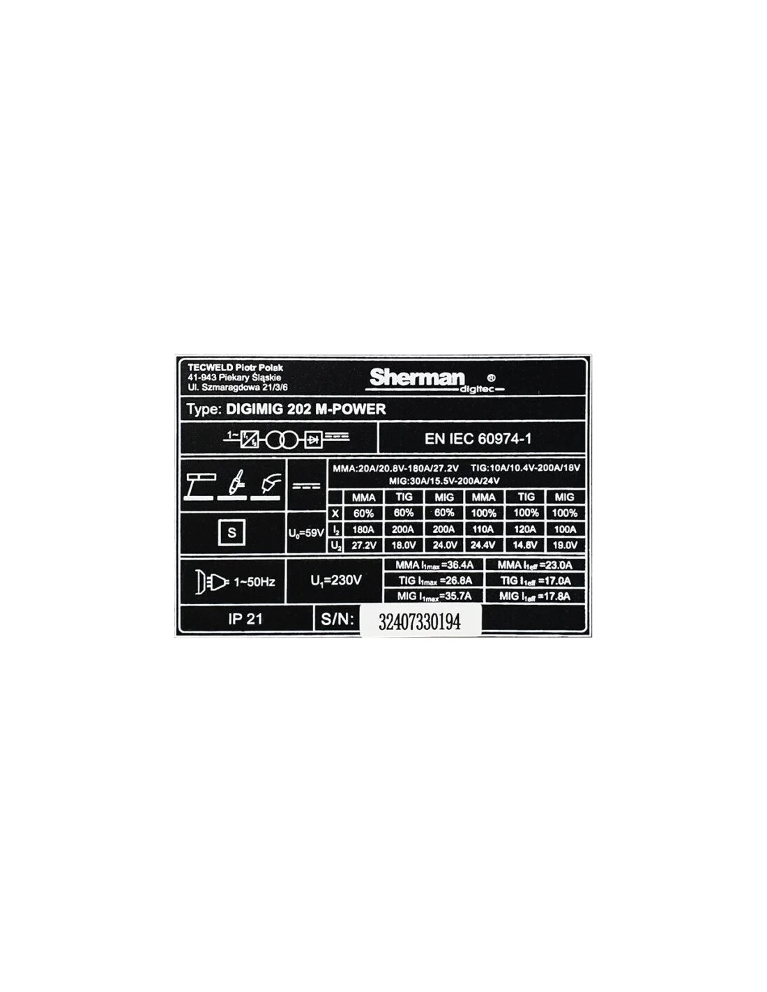 Sherman DIGIMIG 202 M-POWER synchronous inverter welder