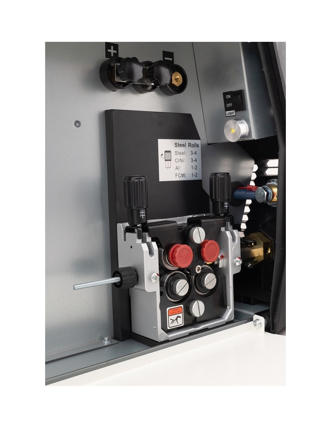 Aparatas turi 5 colių LCD ekraną, kuriame rodoma visa svarbi informacija apie suvirinimo parametrus. Jis taip pat palaiko sinerginius režimus, kurie leidžia lengvai sureguliuoti nustatymus pagal skirtingas medžiagas (plienas, nerūdijantis plienas, aliuminio lydiniai, cinkuotas metalas, miltelinė viela).