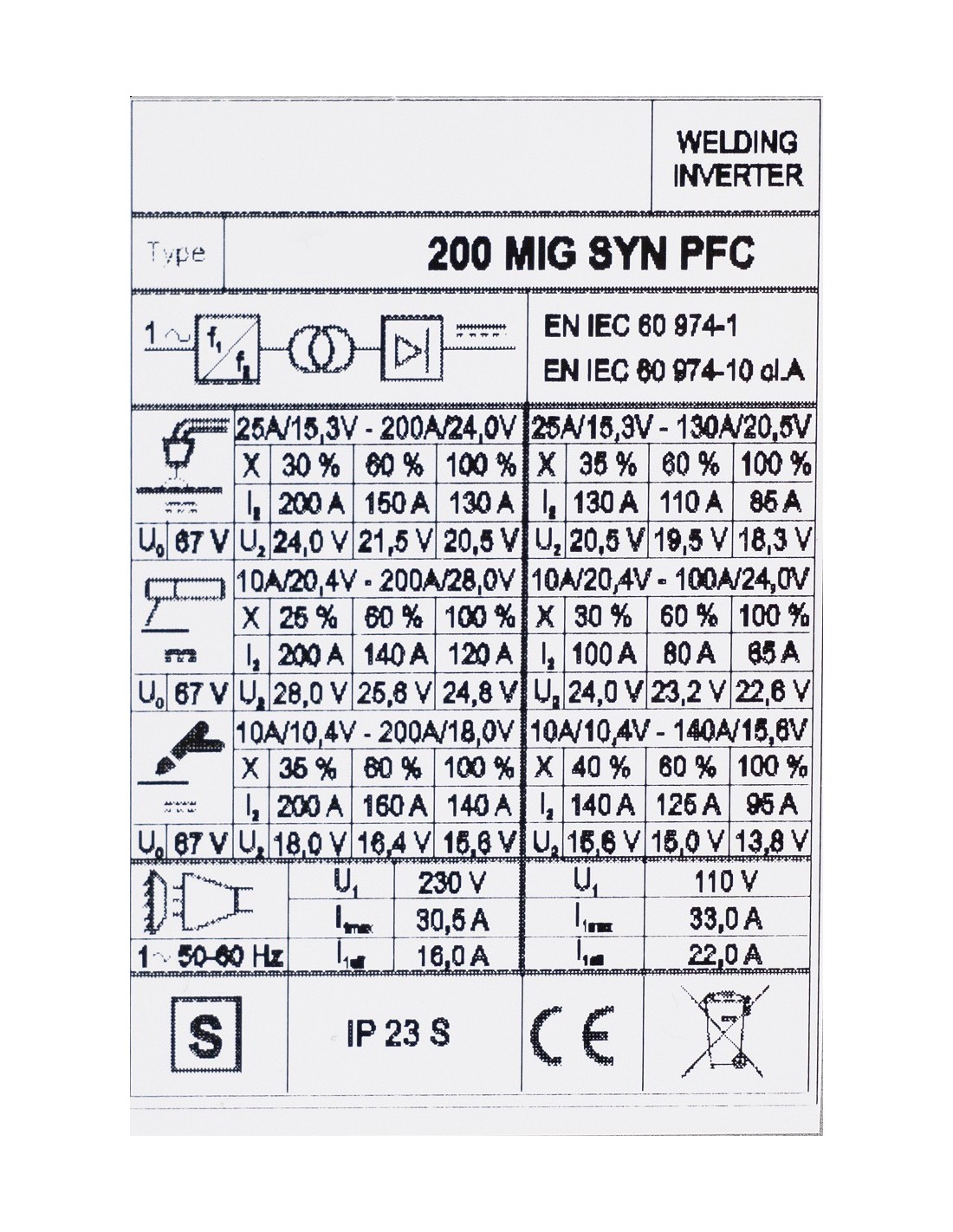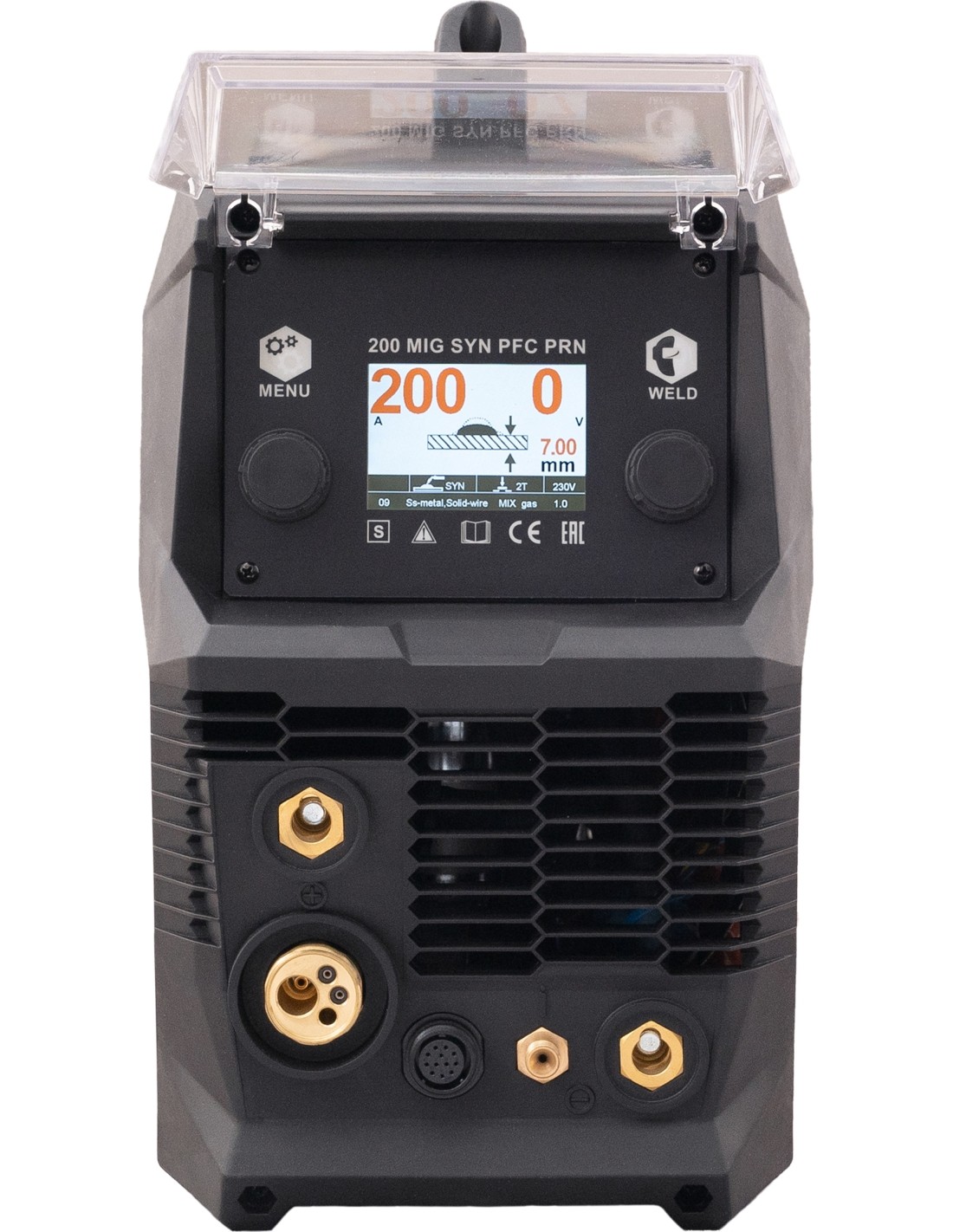 200 MIG SYN PFC – tai profesionalus, daugiafunkcis suvirinimo aparatas, pritaikytas MIG/MAG, MMA ir TIG metodams. Dėl pažangios PFC (Power Factor Correction) technologijos užtikrinamas stabilus darbas net esant tinklo įtampos svyravimams, mažesnė apkrova elektros tinklui bei didesnis efektyvumas.