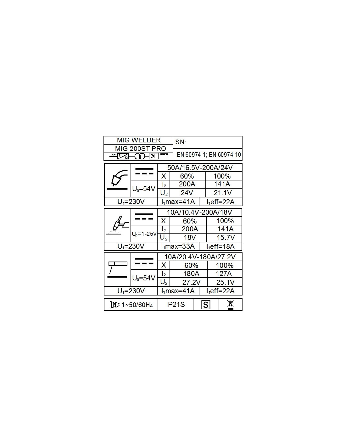 - Srovė prie 100% darbo ciklo: 141 A