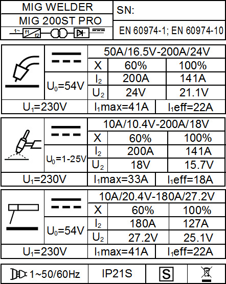 FORBY® MIG-200ST PRO - SINERGINIS, NUSTATYMAS PAGAL METALO STORĮ