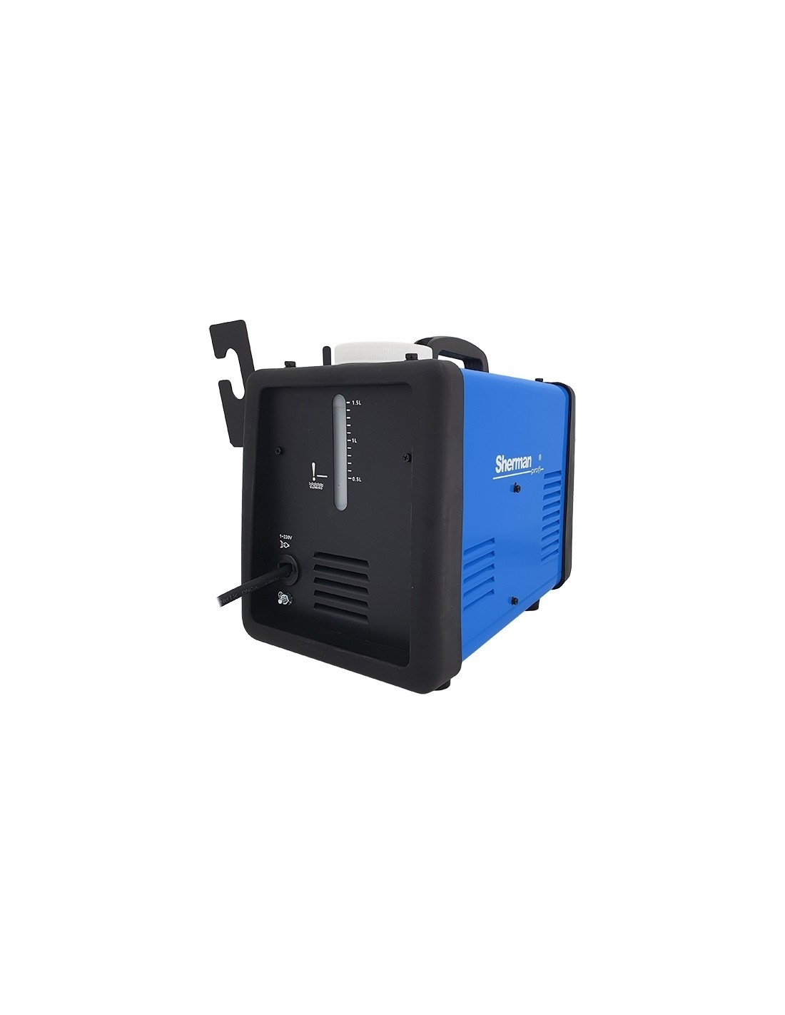 Key details: single-phase (230 V) with IP21S protection. Output voltage in "VOLTAGE HIGH" mode: 18–21 V DC and 25–30 V DC. 2 l cleaning-fluid tank and a 3 m cable. Maximum current consumption 6 A. Dimensions 42 × 23 × 29 mm, weight 18.64 kg. 1-year warranty.