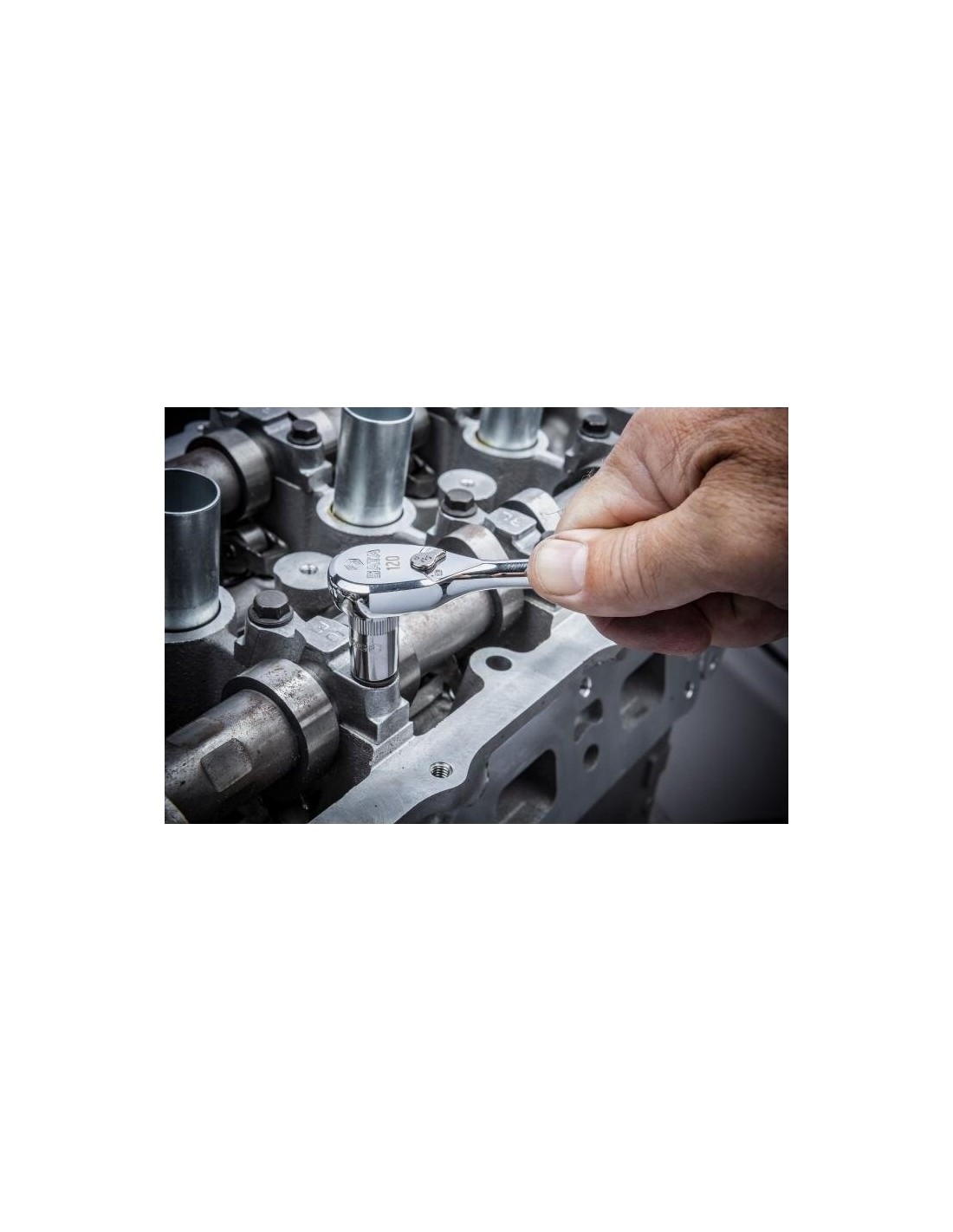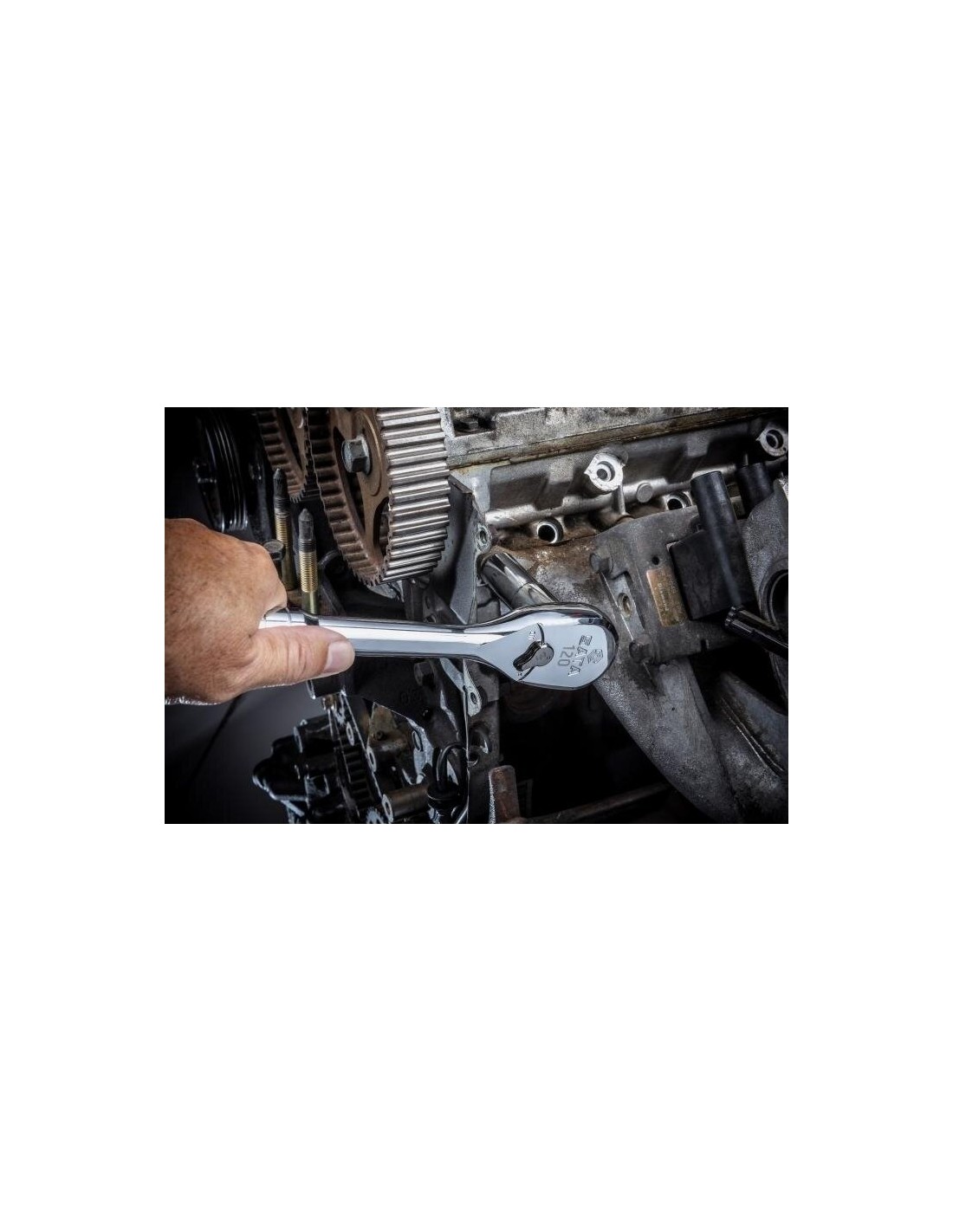Įgilinta atbulinės eigos svirtis leidžia vartotojui keisti kryptį viena ranka nenuimant veržliarakčio