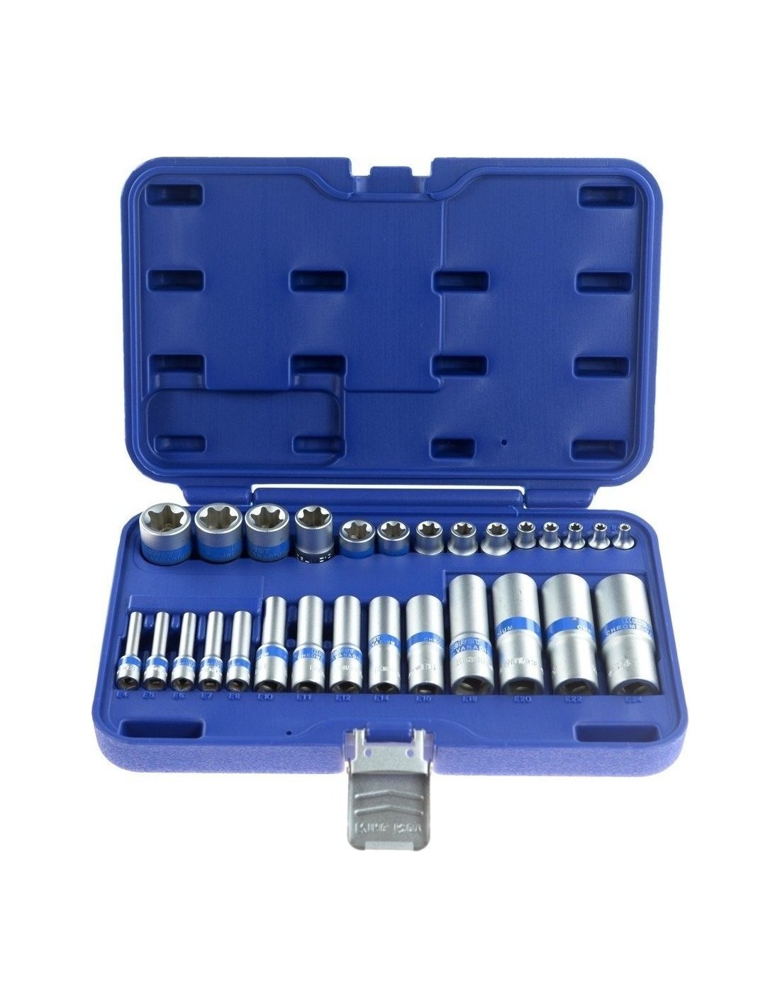 Galvučių rinkinys 1/4 + 3/8 + 1/2 E 28vnt.