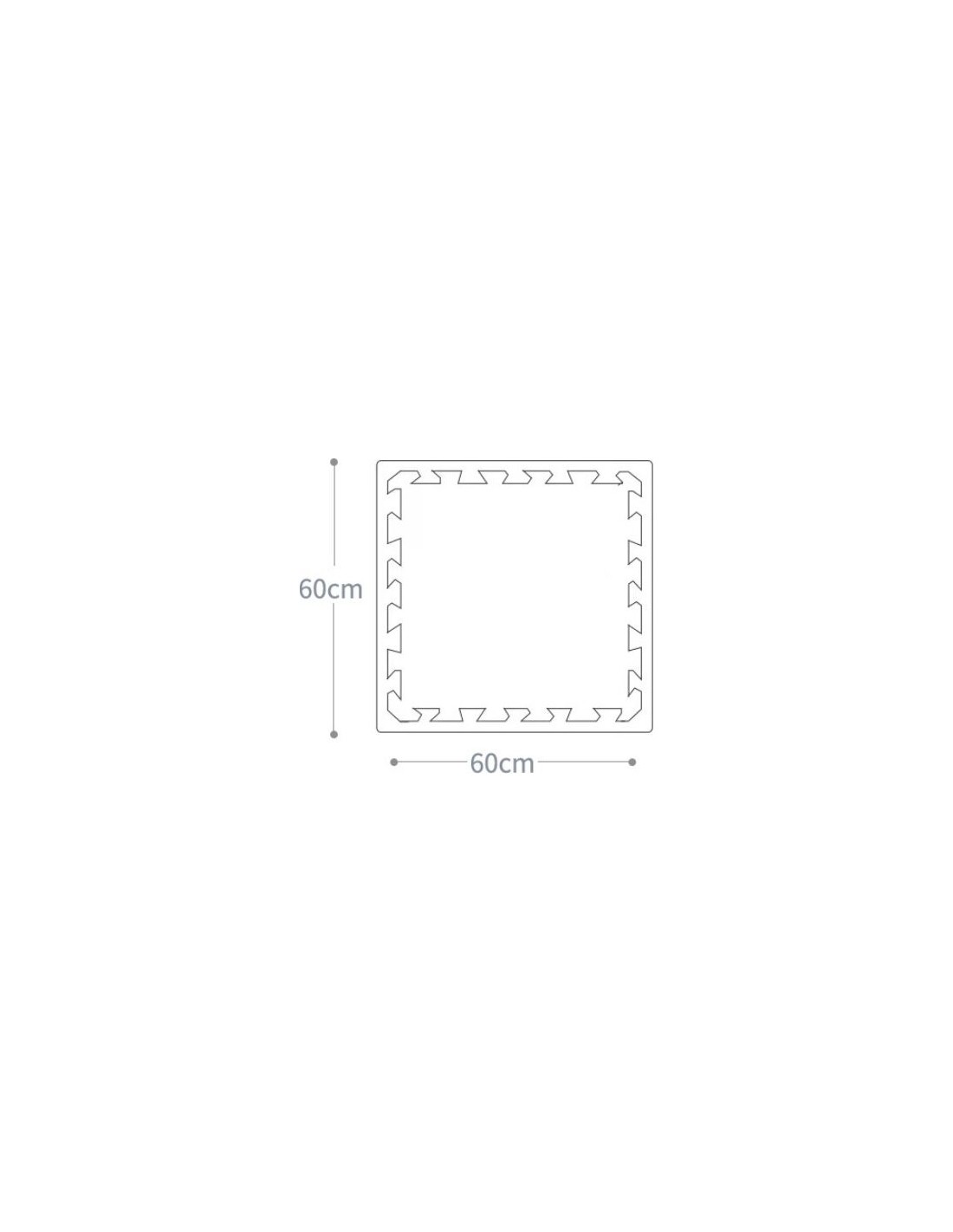 Į komplektą įeina šeši kilimėliai, kurių matmenys 600x600mm ir storis 10mm. Kiekvienas kilimėlis turi dvi briaunas, todėl galima laisvai išsidėlioti kaip patogu