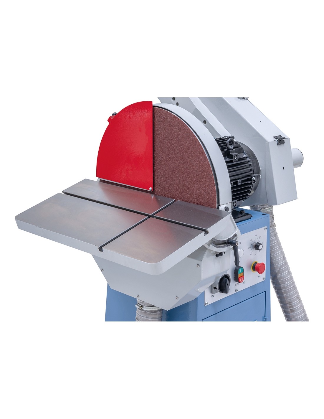 - For optimal use of sanding disc the sanding table is mounted below the middle