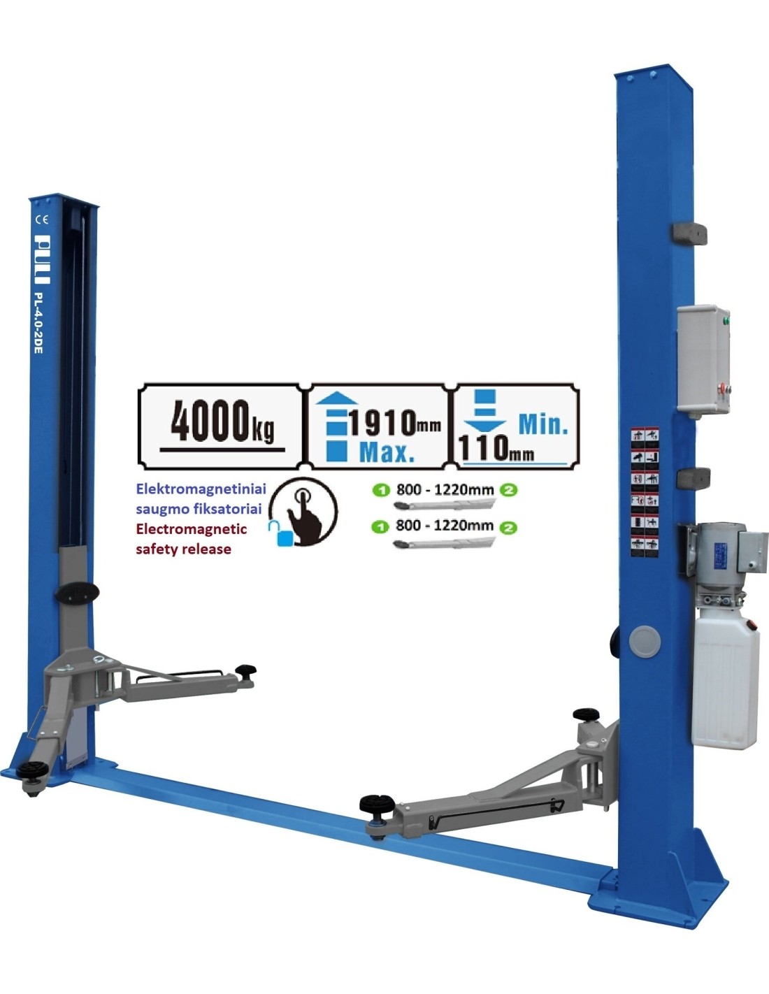 Hidraulinis dviejų kolonų keltuvas su elektromagnetiniu fiksavimu, 4.0t - 4.0t, 380V