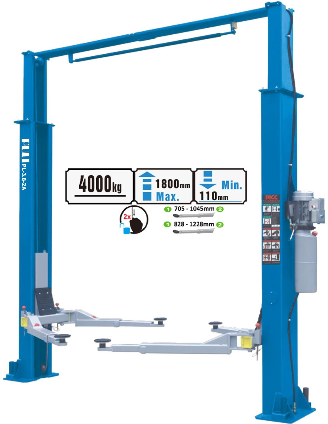 Hidraulinis dviejų kolonų keltuvas su mechaniniais saugumo fiksatoriais, 4.0t - 4.0t, 220V