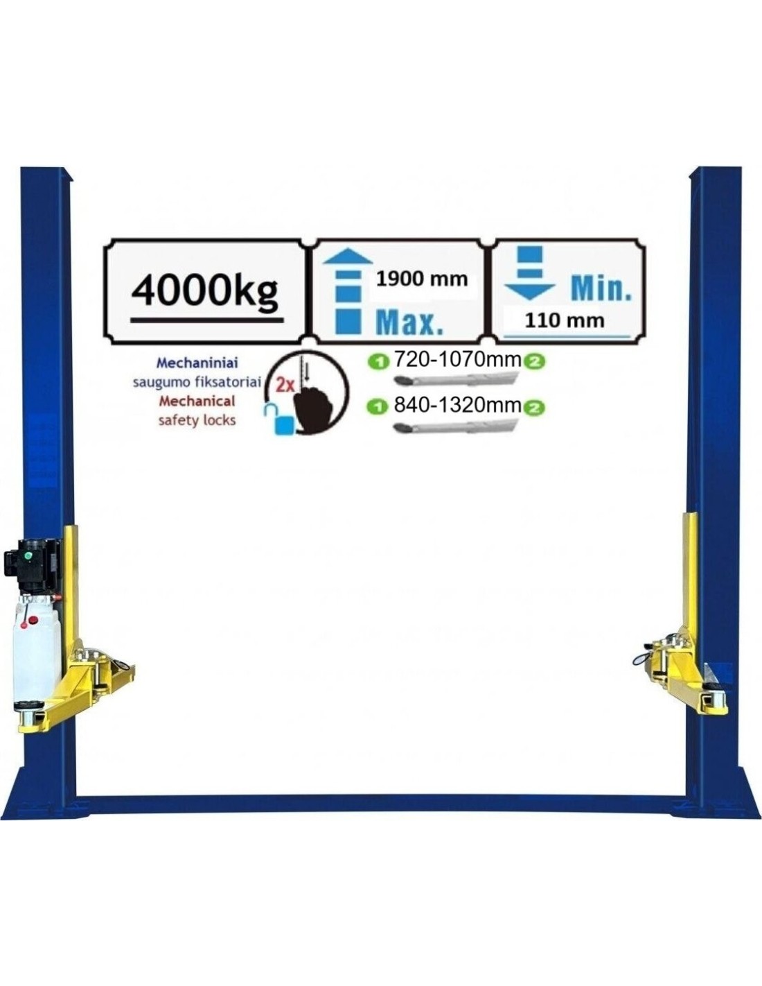 Hidraulinis dviejų kolonų keltuvas su mechaniniais saugumo fiksatoriais, 4.0t - 4.0t, 380V