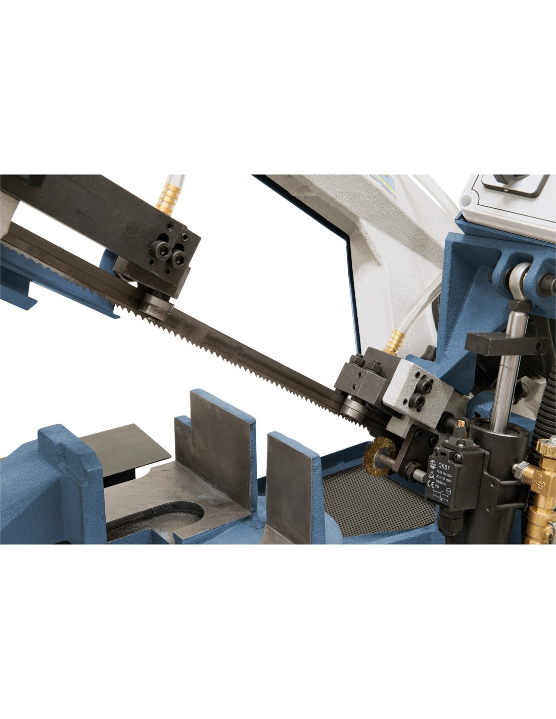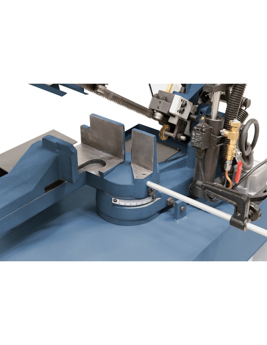 - Stepless lowering of saw frame by hydraulic cylinder