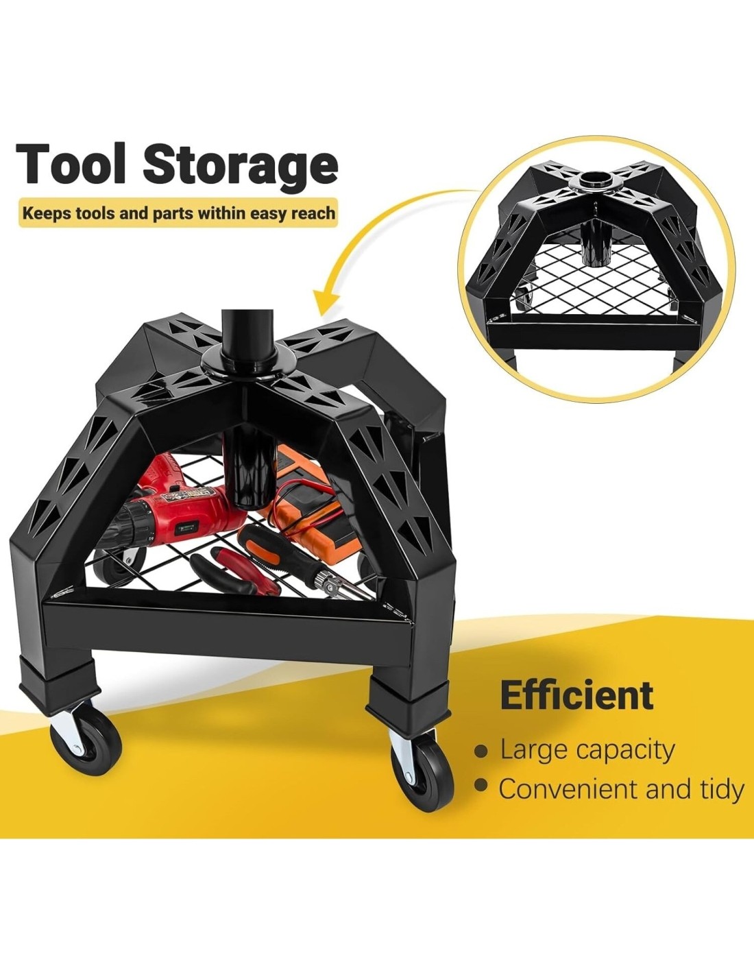 Po kėde yra vietos susidėti įrankiams, perforotuos sienelės papildomam atsuktuvų ar kitų įrankių patogiam laikymui