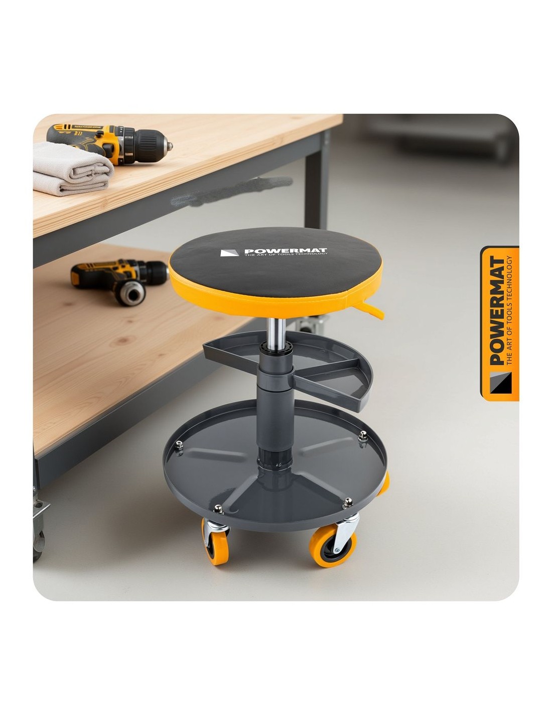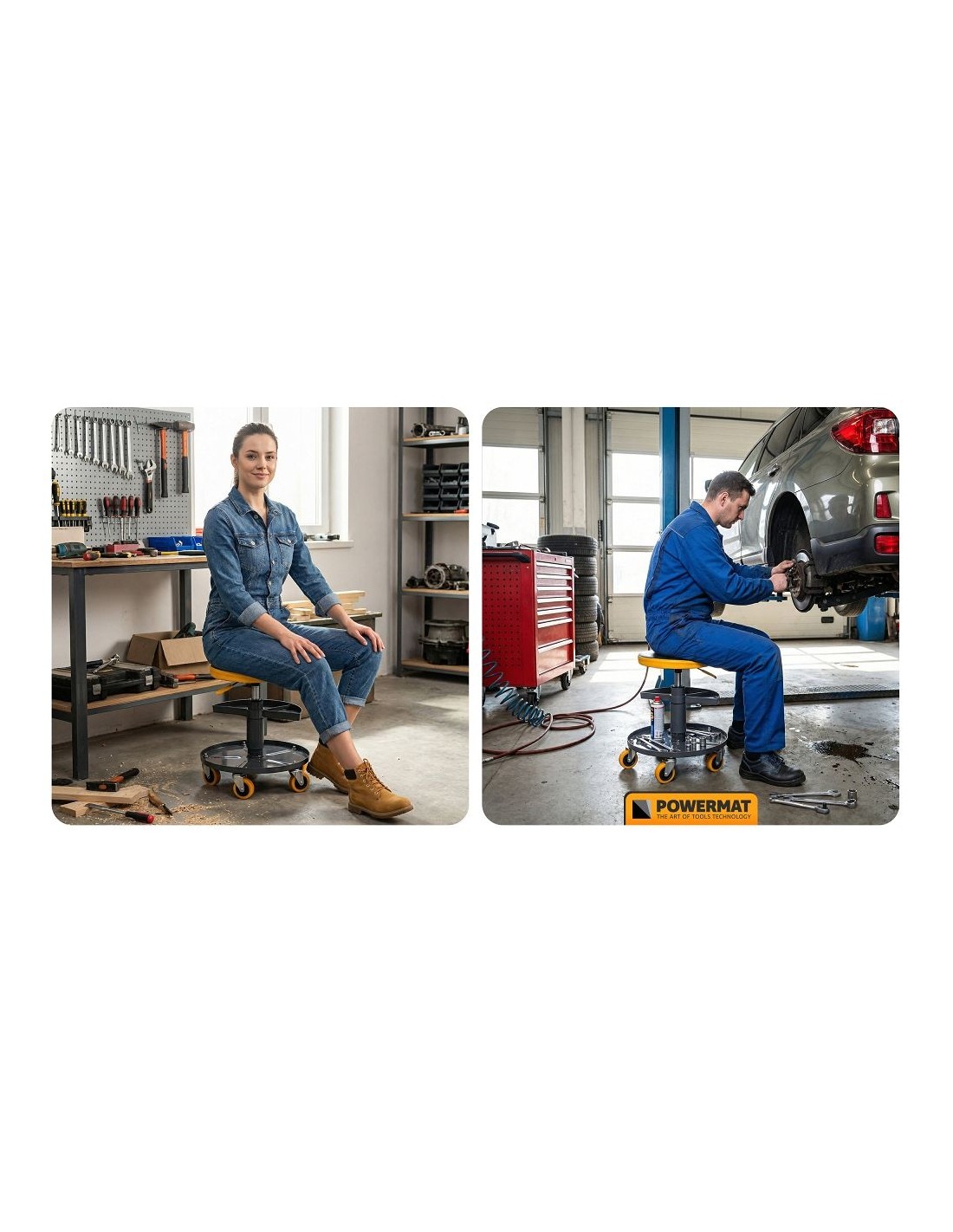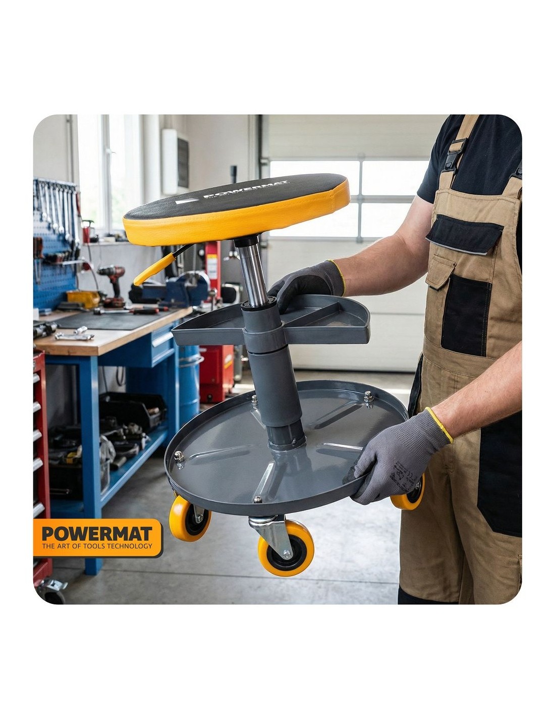 Powermat teleskopinė dirbtuvių kėdė – tai praktiškas, patogus ir mobilus sprendimas kasdieniams darbams. Reguliuojamas aukštis, kompaktiška konstrukcija ir funkcionalios detalės leidžia dirbti efektyviau ir patogiau.